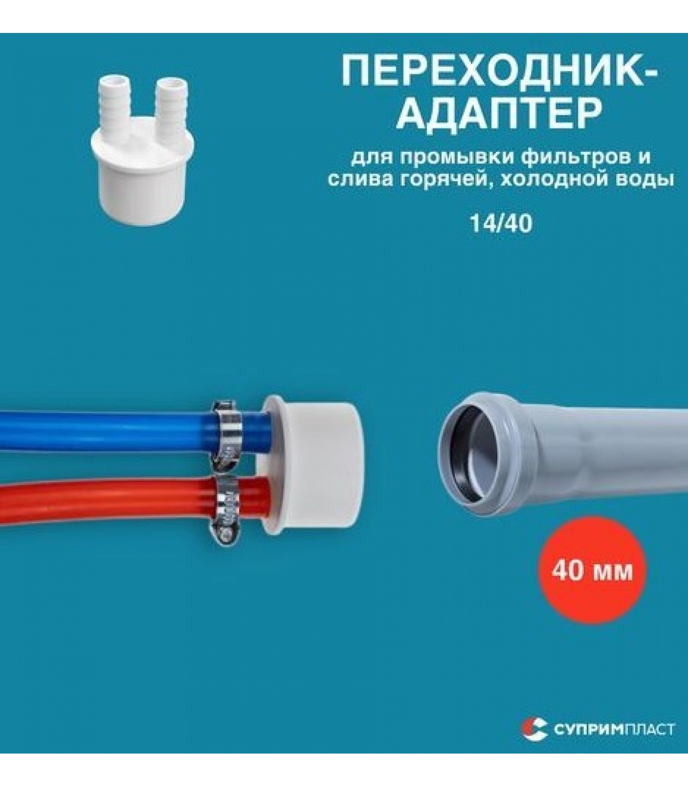 Адаптер 40 на 2 отвода (14+14) для подключения слива бытовой техники Супримпласт
