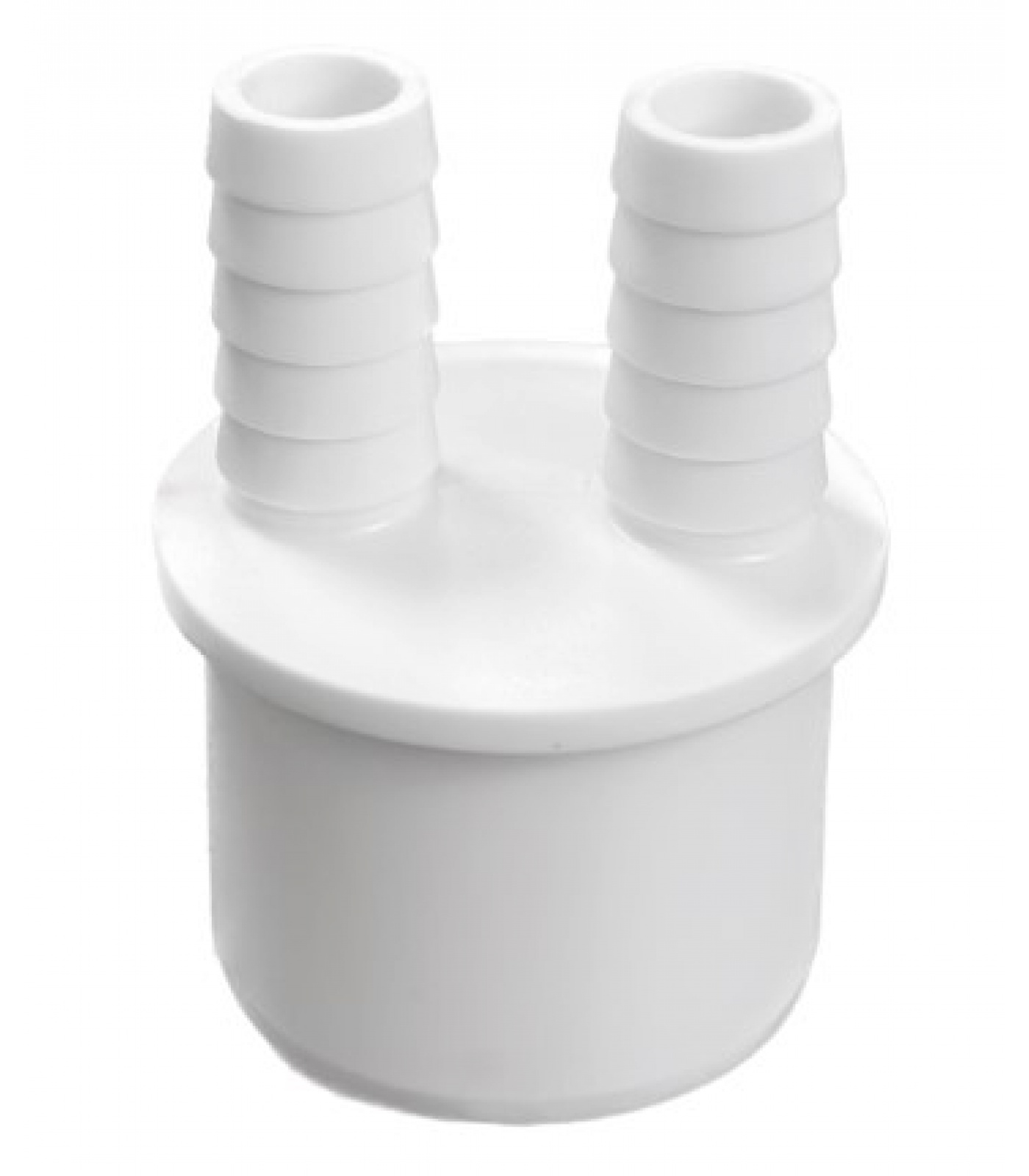 Пластиковый адаптер с двумя отводами применяется для промывки фильтров и слива горячей, холодной воды в канализационную трубу.