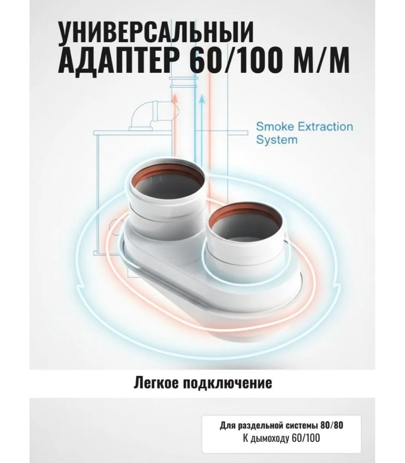 Адаптер для раздельной систем м/м 60/100 на 80/80 Универсал.(А-03-013, А-03-012) (кроме Bosch,Buderus).