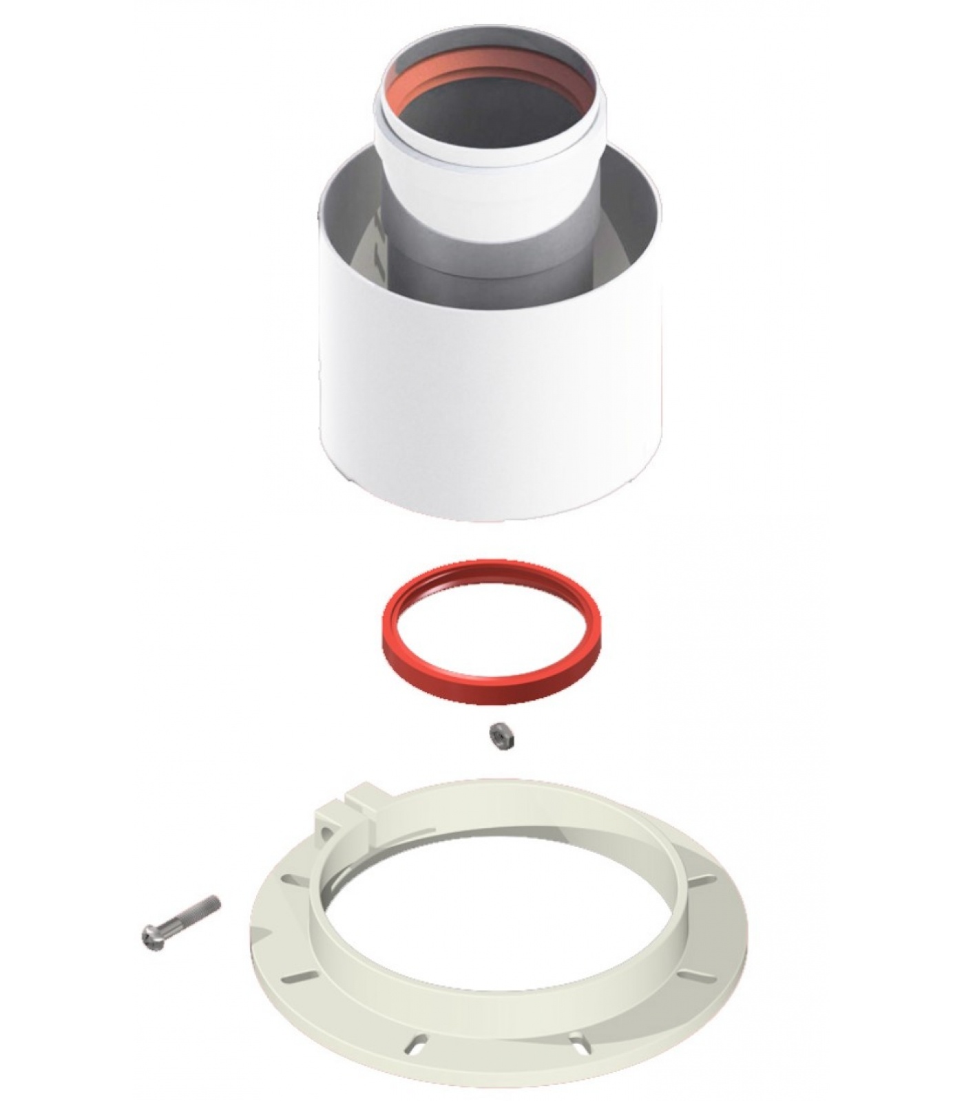 Вертикальный адаптер диаметром 60/100 мм в сборе (адаптер, уплотнение, фланец). Стартовый элемент вертикальной системы. Подключение осуществляется через фланец. Предназначен для коаксиальных труб котлов с закрытой камерой сгорания.