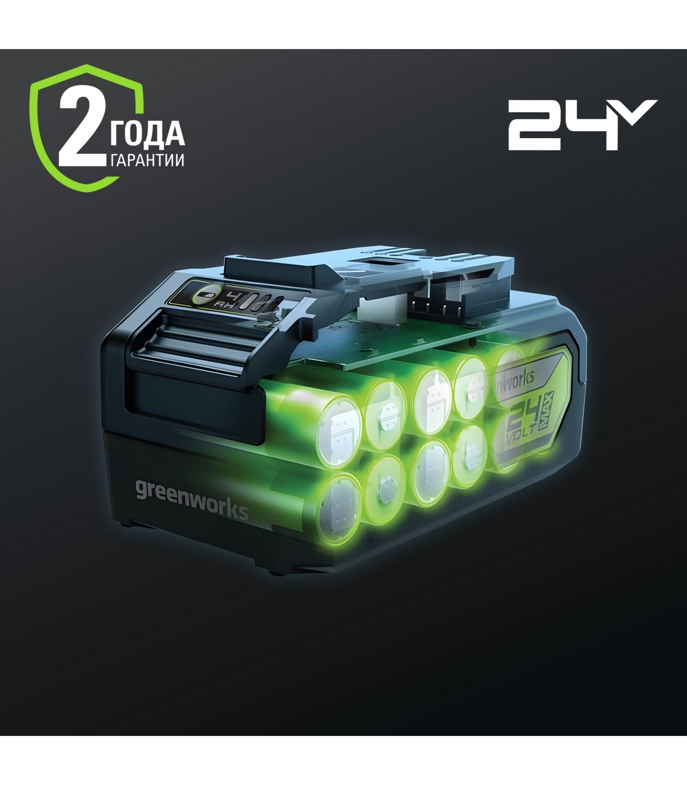 Система Greenworks Intelligent Power обеспечивает защиту аккумуляторного блока от перегрева, от перегрузки, от глубокого разряда, от перезаряда, продлевая тем самым его срок службы.