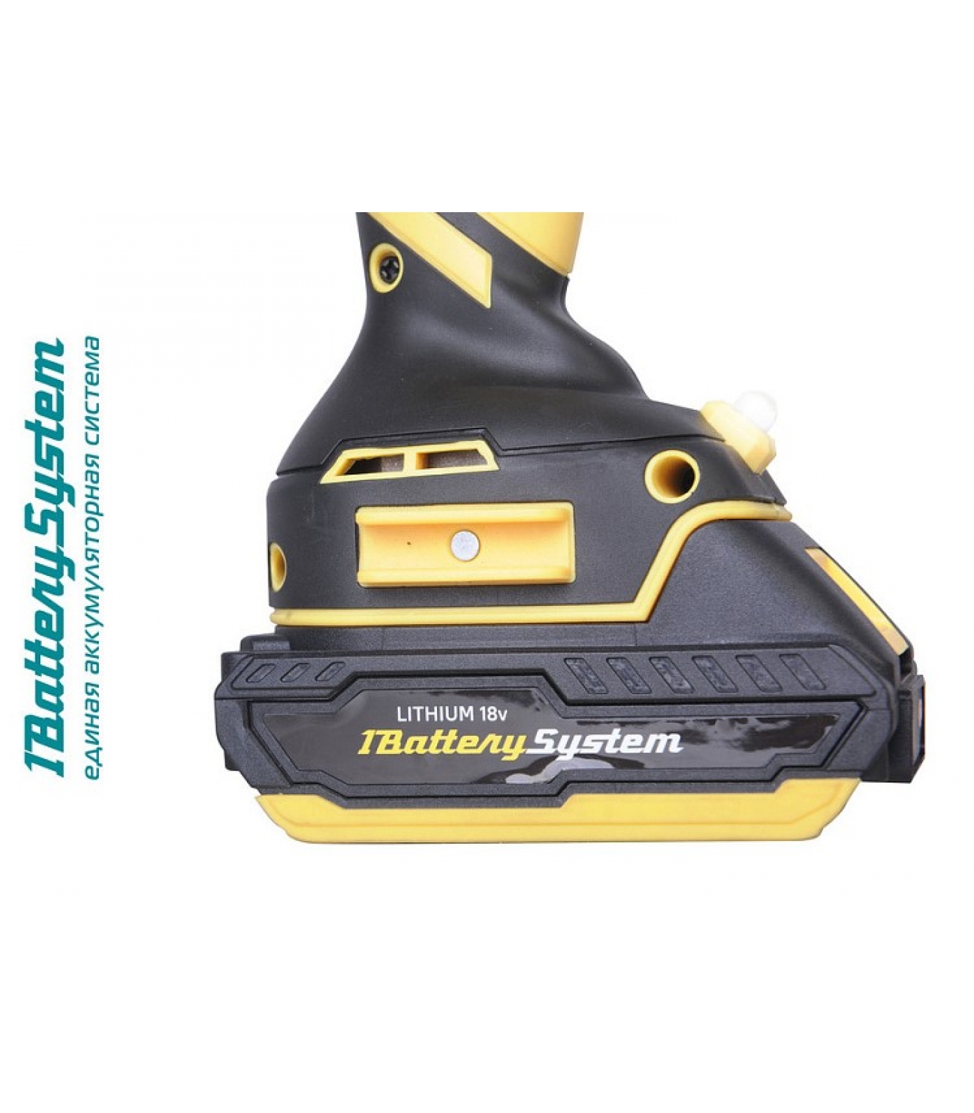 Данная модель является частью системы 1BatterySystem и совместима со всей линейкой аккумуляторного инструмента. Два Li-Ion аккумулятора на 2 Ah с до 3000 зарядок и собственной системой защиты от перегрузки, перегрева и глубокого разряда обеспечат полную непрерывность в работе. Функция быстрой зарядки зарядного устройства полностью восстановит работоспособность аккумулятора всего за 60 минут или за 35 минут до 80%.