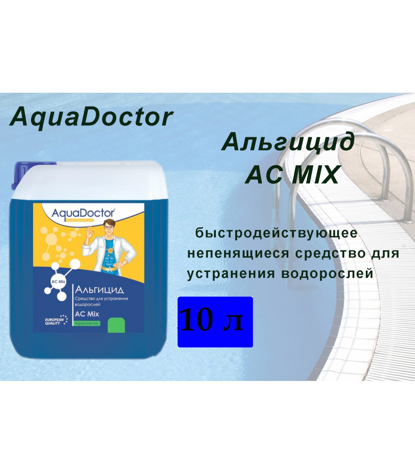 Aquadoctor АС Mix – быстродействующий жидкий альгицид с мощным бактерицидным, противогрибковым, противоводорослевым и противоспоровым эффектом. Предназначен для проведения шоковой обработки воды в бассейне. Используется для избавления бассейнов и других искусственных водоемов от бактерий, грибков, спор и водорослей. Форма поставки: жидкий концентрат.