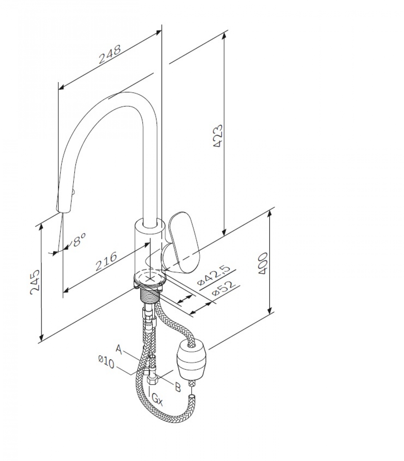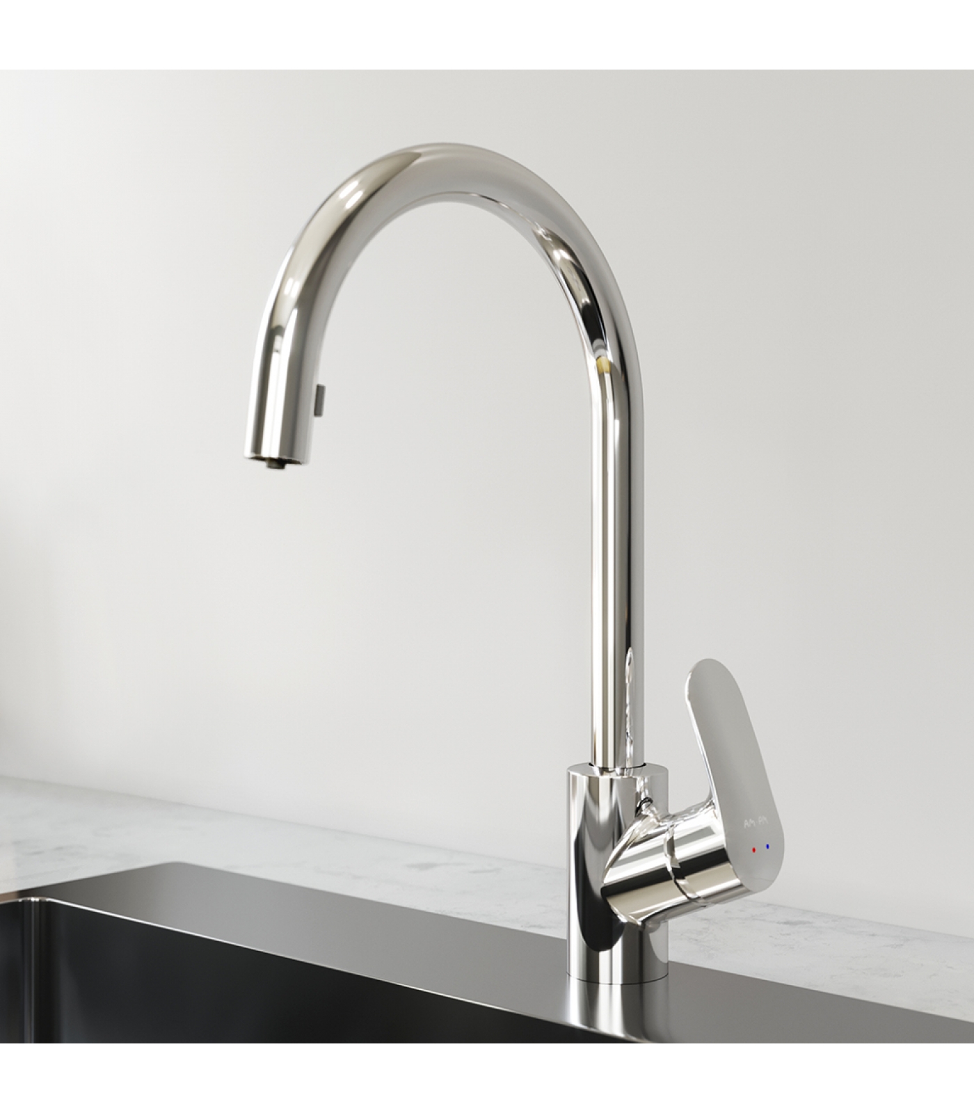 Смеситель для кухни AM.PM Like F8012000, однорычажный, высокий поворотный вытяжной излив