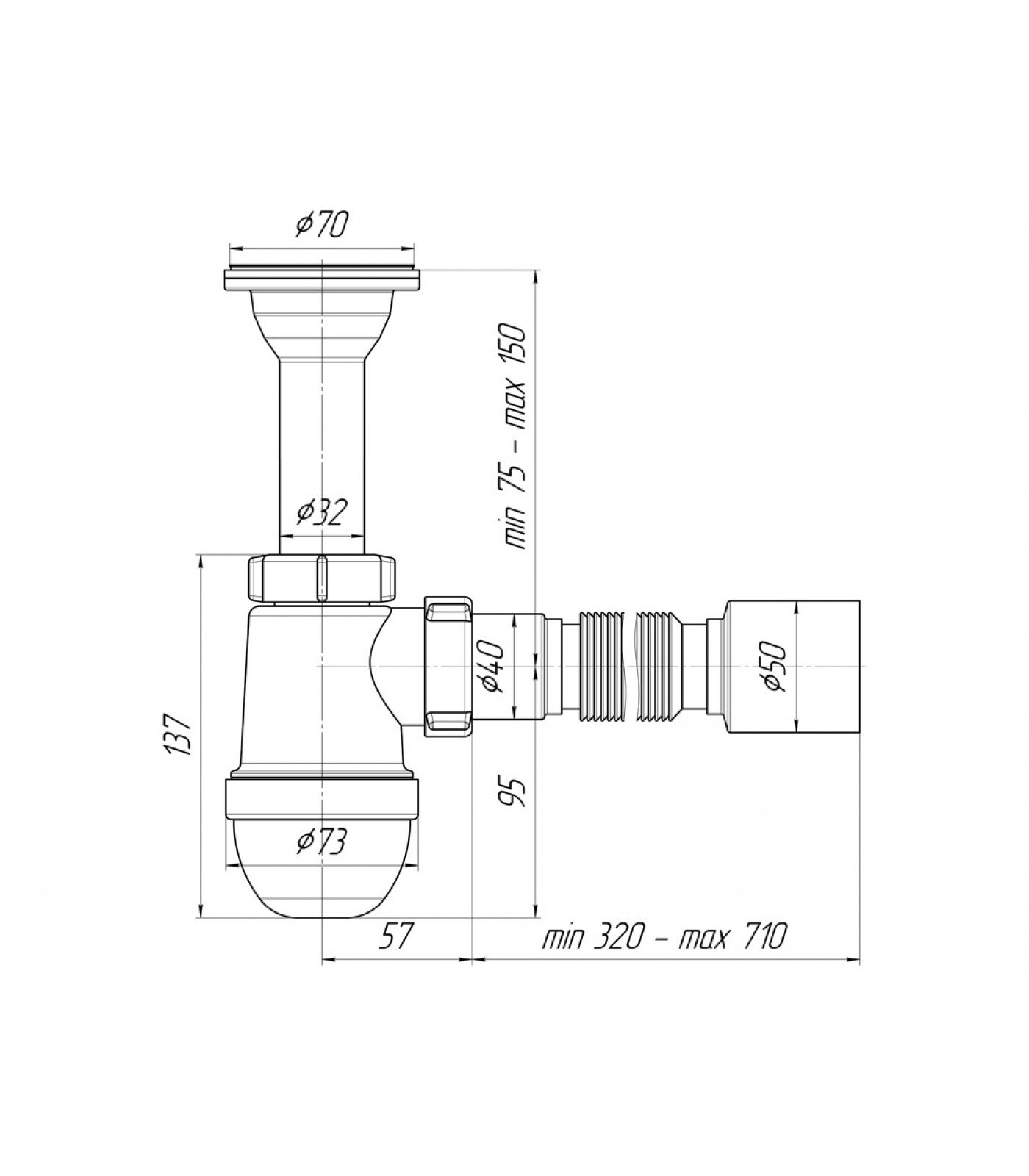 • Тип сифона: бутылочный