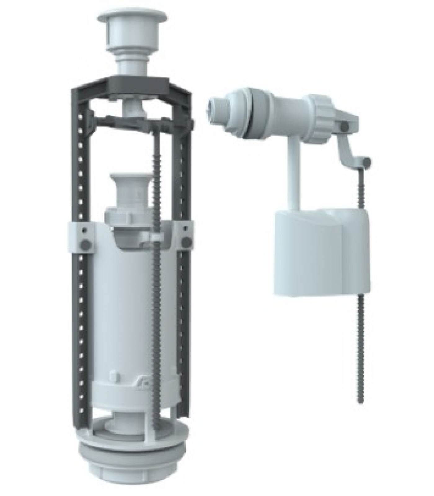 Комплект арматуры клапан спускной и наполнительный с боковой подводкой (кнопка белая)