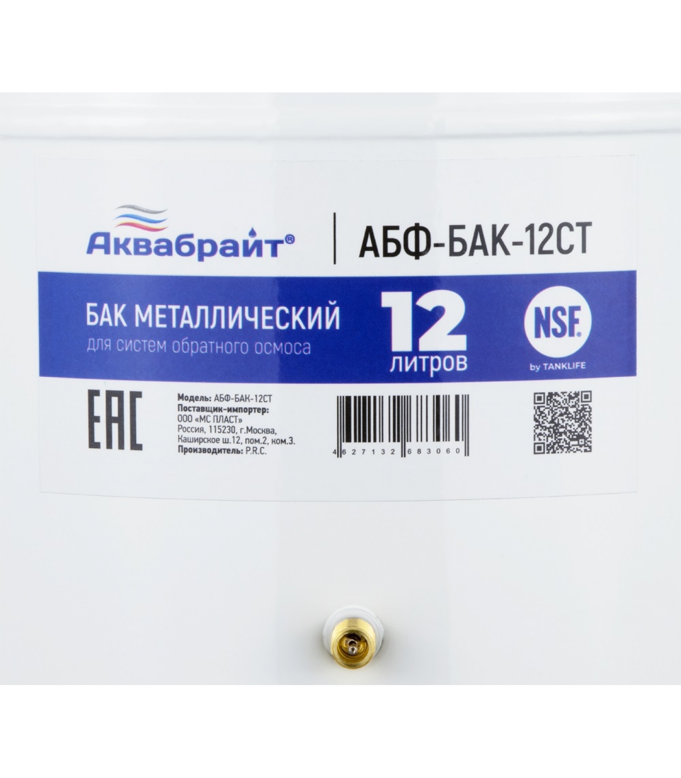 Бак накопительный Аквабрайт металлический 12 л., для систем обратного осмоса, 1/4 дюйма