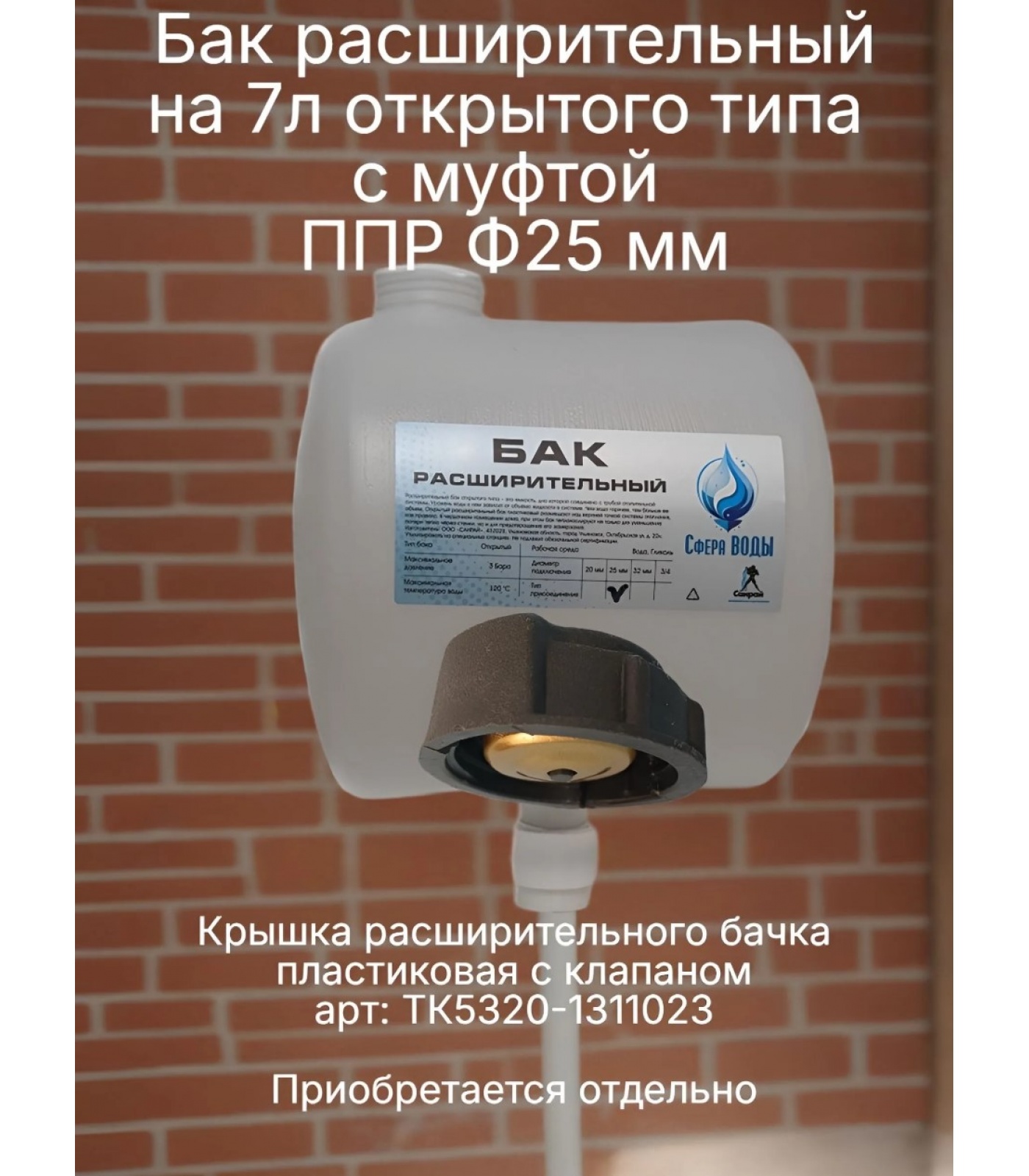 Бак расширительный 7л открытого типа (пластик) с 25 муфтой