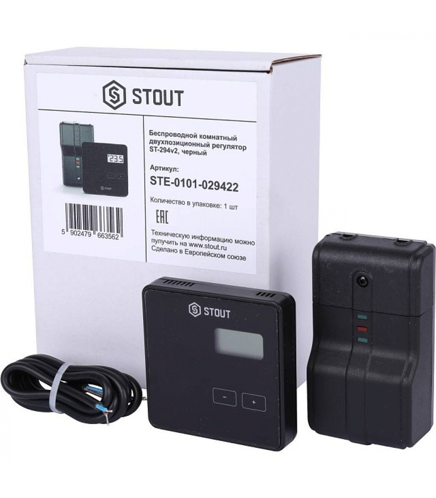 STOUT Беспроводной комнатный двухпозиционный регулятор ST-294v2, черный