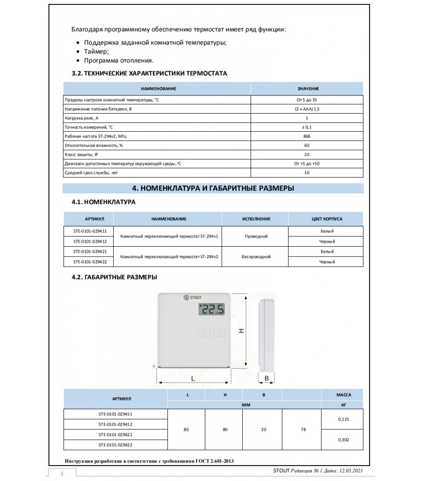 Комнатные термостаты ST-294 STOUT предназначены для управления нагревательным или охлаждающим устройством (например, газовым, дизельным или электрическим котлом, или контроллером котла). Термостаты поддерживают заданную температуру в помещении путем передачи сигнала на отопительное/охлаждающее устройство или головной контроллер (размыкание контакта) сообщая о том, что температура в помещении достигла заданных значений.