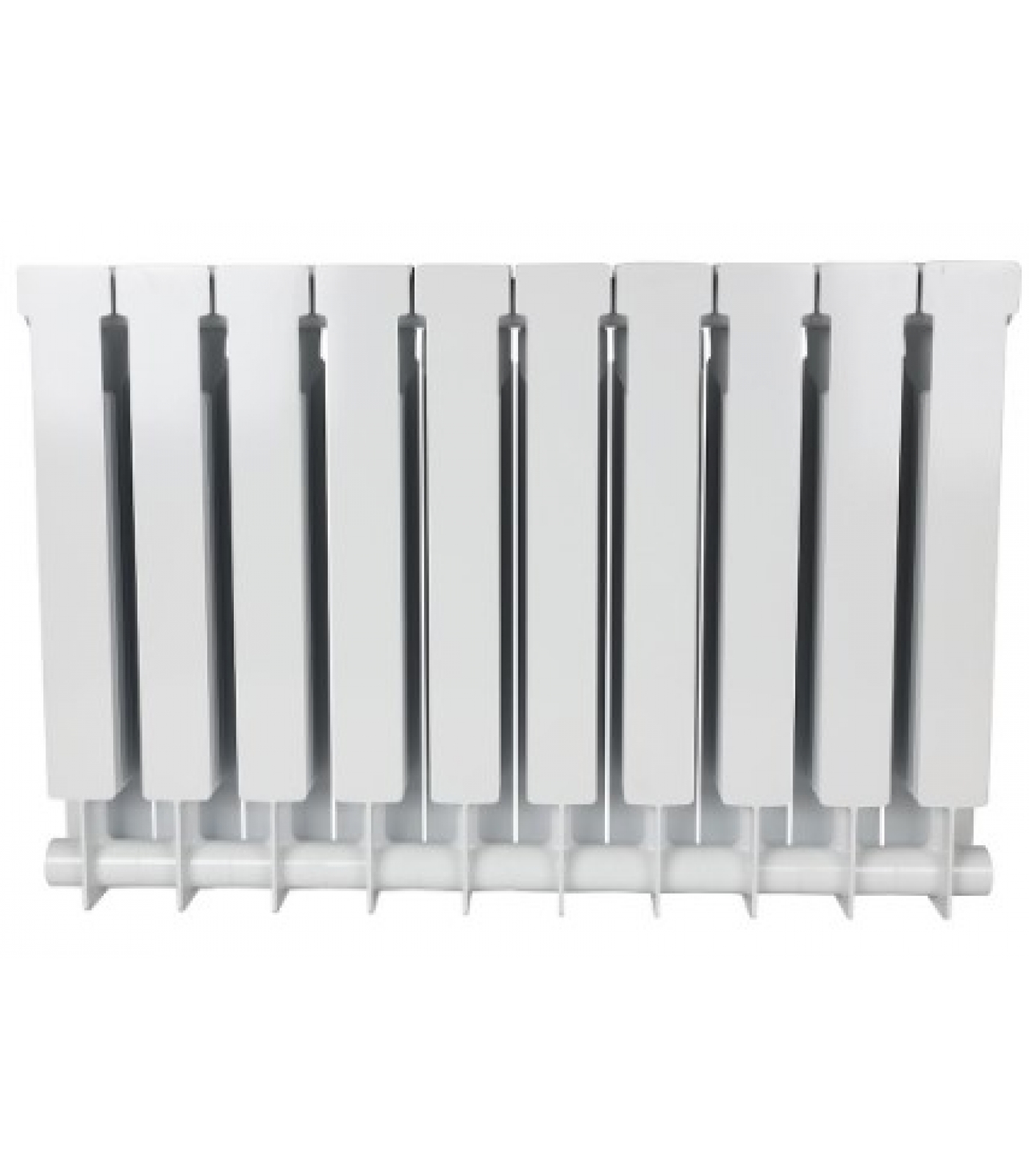 Внутренняя часть секции биметаллического радиатора – горизонтальные коллекторы и вертикальный канал, находящиеся в непосредственном контакте с водой, полностью выполнены из стали. Такая конструкция обеспечивает значительную прочность, что обуславливает долгий срок эксплуатации приборов.