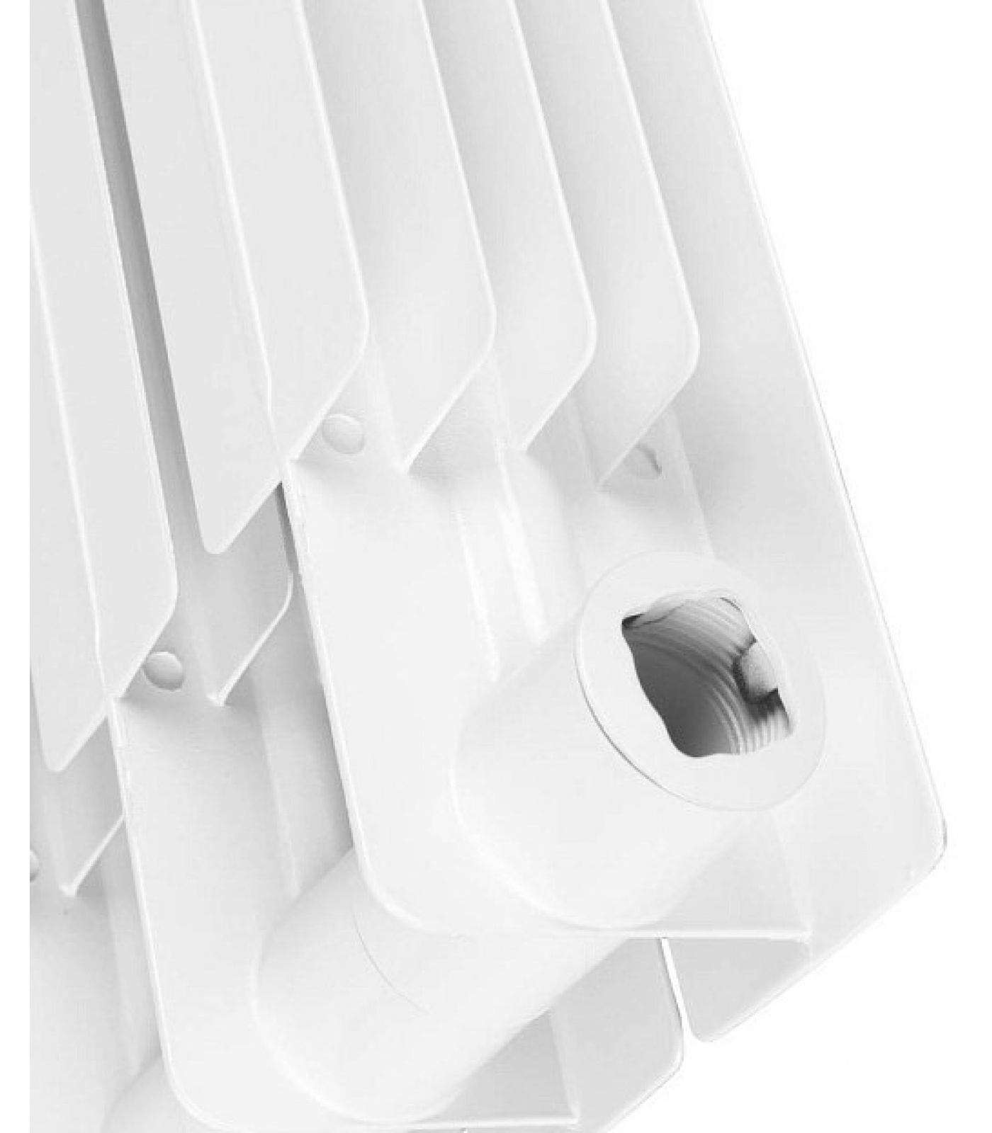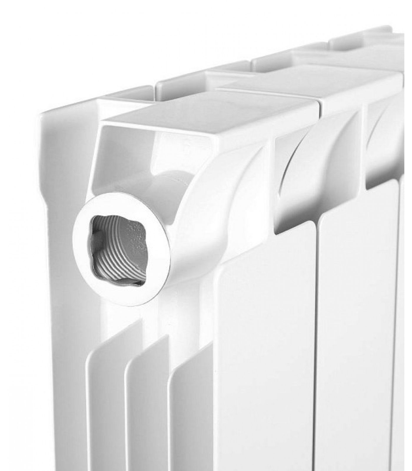 В отверстиях горизонтальных коллекторов выполнена трубная цилиндрическая резьба G1" (с одной стороны правая, а с другой левая). Резьба предназначена для соединения секций между собой в радиаторы различной длины с помощью стальных резьбовых ниппелей. Геометрия ниппельных соединений и параметры прокладок гарантируют надежную герметичность собранного радиатора.