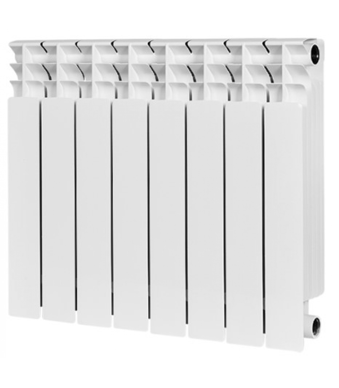 Секционные радиаторы STOUT TITAN собираются из отдельных секций, которые изготавливаются из качественного сплава методом литья под давлением. Внутренняя часть секции биметаллического радиатора – горизонтальные коллекторы и вертикальный канал, находящиеся в непосредственном контакте с водой, полностью выполнены из стали. Такая конструкция обеспечивает значительную прочность, что обуславливает долгий срок эксплуатации приборов.