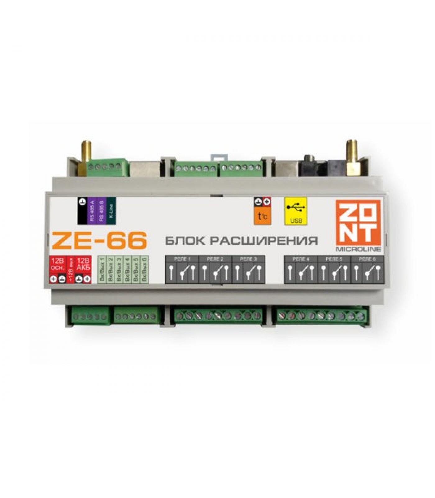 Блок расширения ZE-66 может подключаться к контроллеру ZONT H2000+ через интерфейс K-Line. При таком виде связи максимальное удаление блока от контроллера составляет 10-15 м.