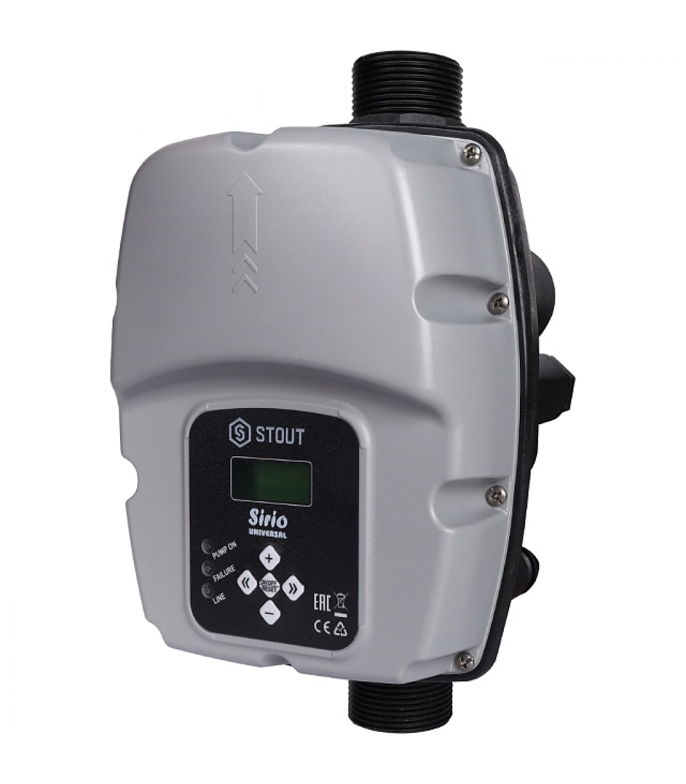 Stout SIRIO UNIVERSAL- частотный преобразователь для управления однофазным насосом мощностью до 1500Вт и трехфазным до 2200Вт. Помогает поддерживать постоянное давление в системе водоснабжения вне зависимости от расхода жидкости.