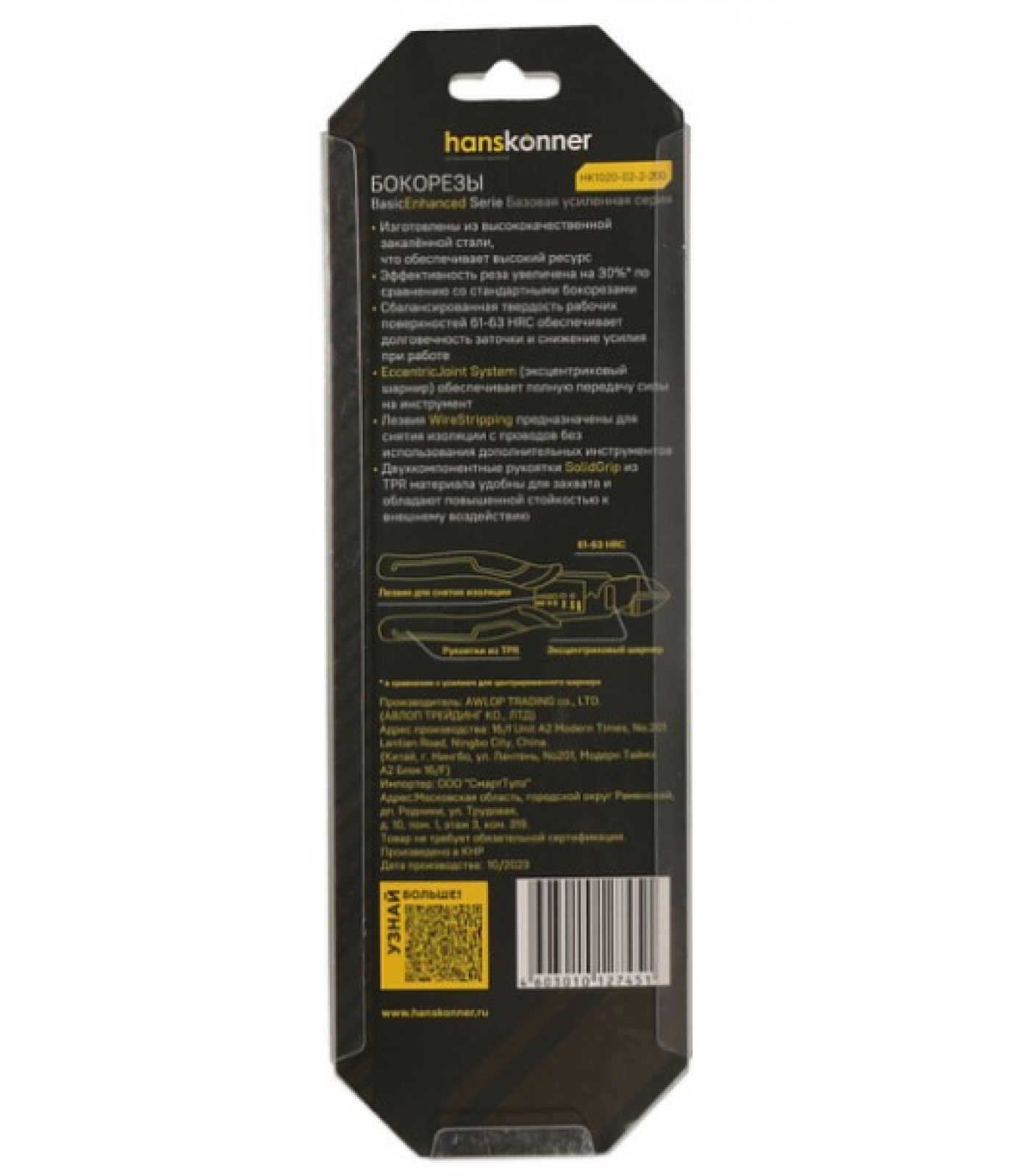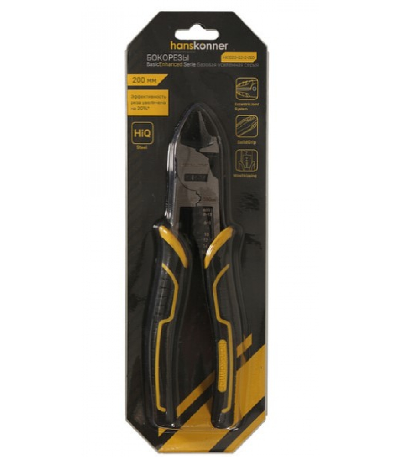 Hanskonner HK1020-02-2-200 Бокорезы 200мм, эксцентриковый шарнир, +30% к силе реза, СrV, TPR рукоятки