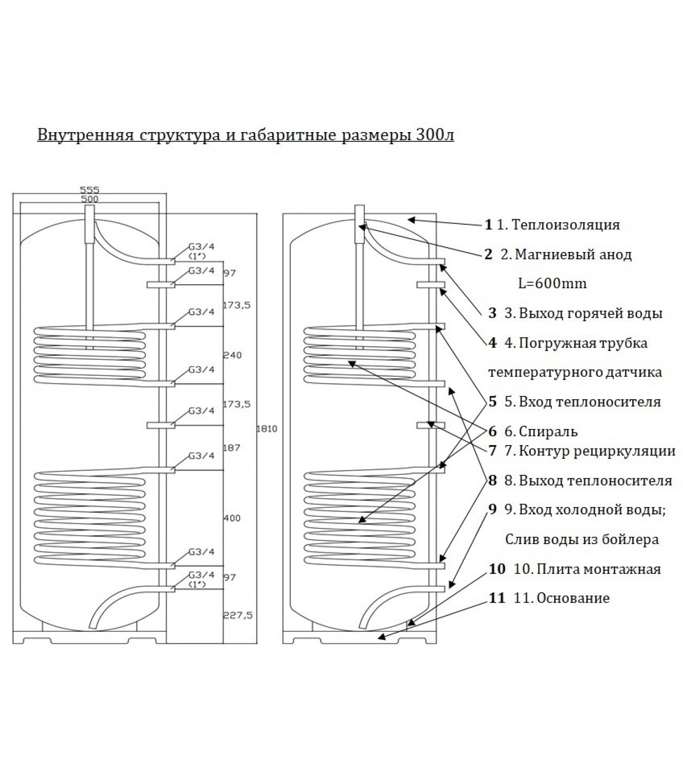 Бойлер 300л Теплорус INOX Бак 1, косвенный