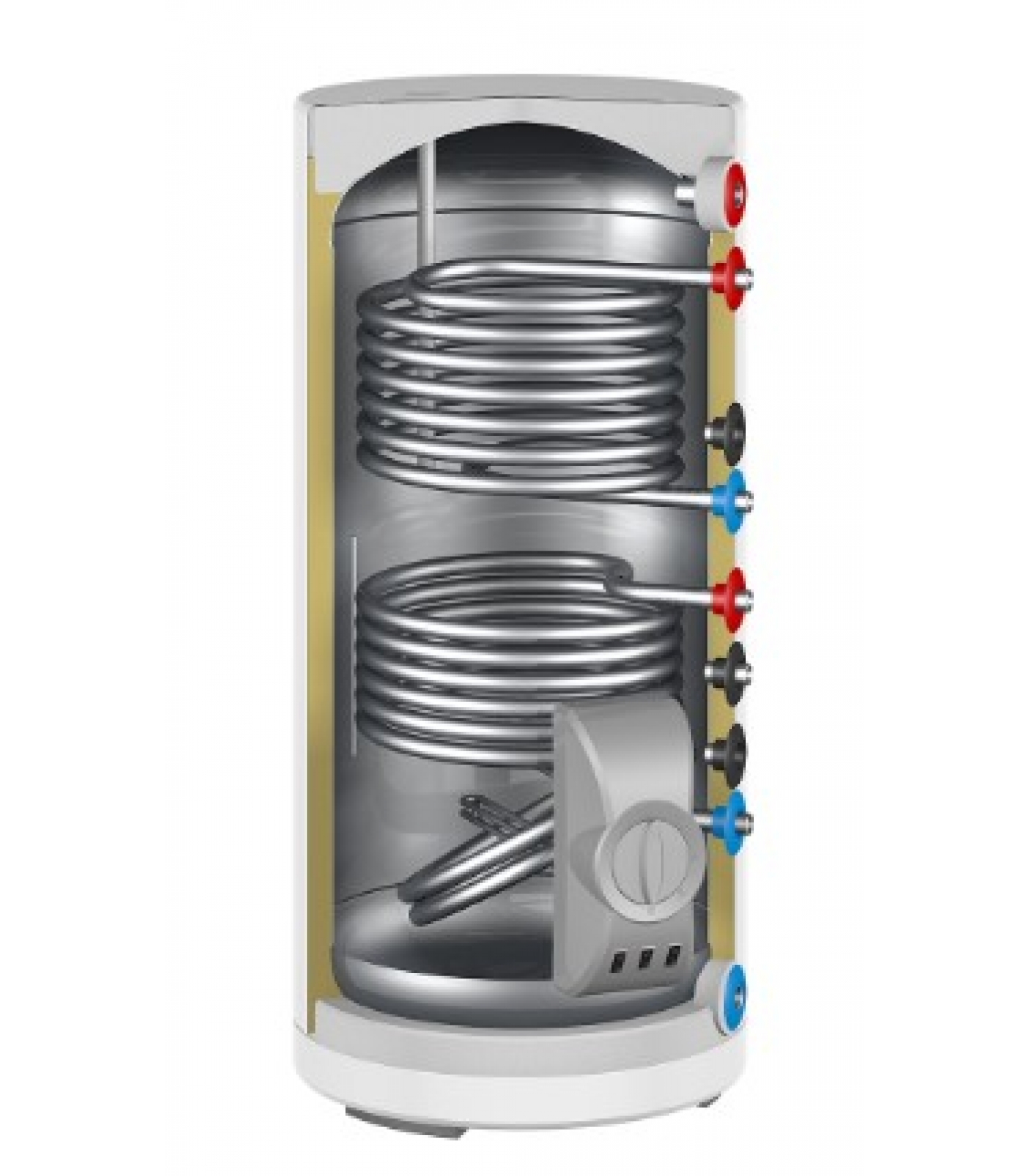 Функциональность. Использование двух теплообменников существенно расширяет возможности использования водонагревателя - можно интегрировать его в две системы нагрева - например, отопления от котла и солнечный коллектор, используя их одновременно для быстрого нагрева воды, или попеременно, нагревая воду за счет котла отопления летом и солнечной батареи зимой. Кроме того, возможно подключить оба контура к одной системе и дважды использовать ее тепло для более быстрого нагрева.