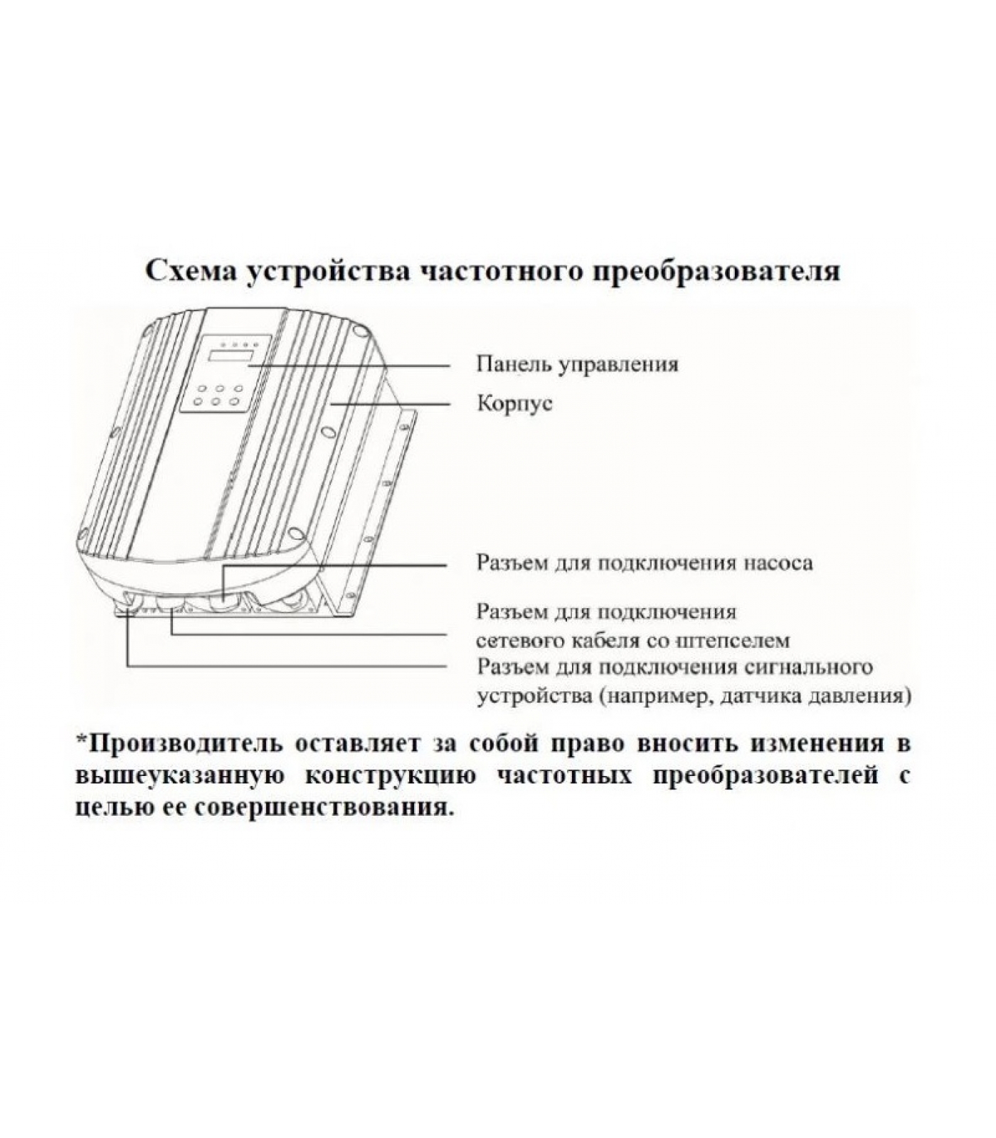 Данный частотный преобразователь предназначен для регулирования частоты вращения вала мотора насоса в зависимости от величины давления жидкости на выходном отверстии.