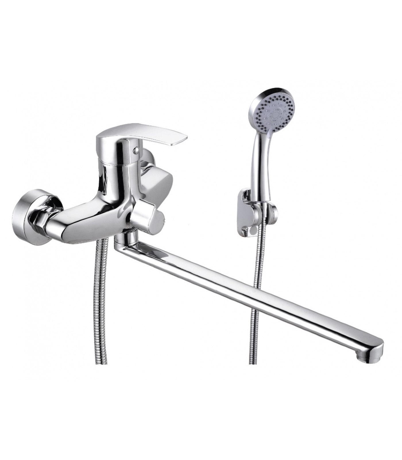 Смеситель для ванны VIEIR V204041, однорычажный, длинный излив, ручной душ