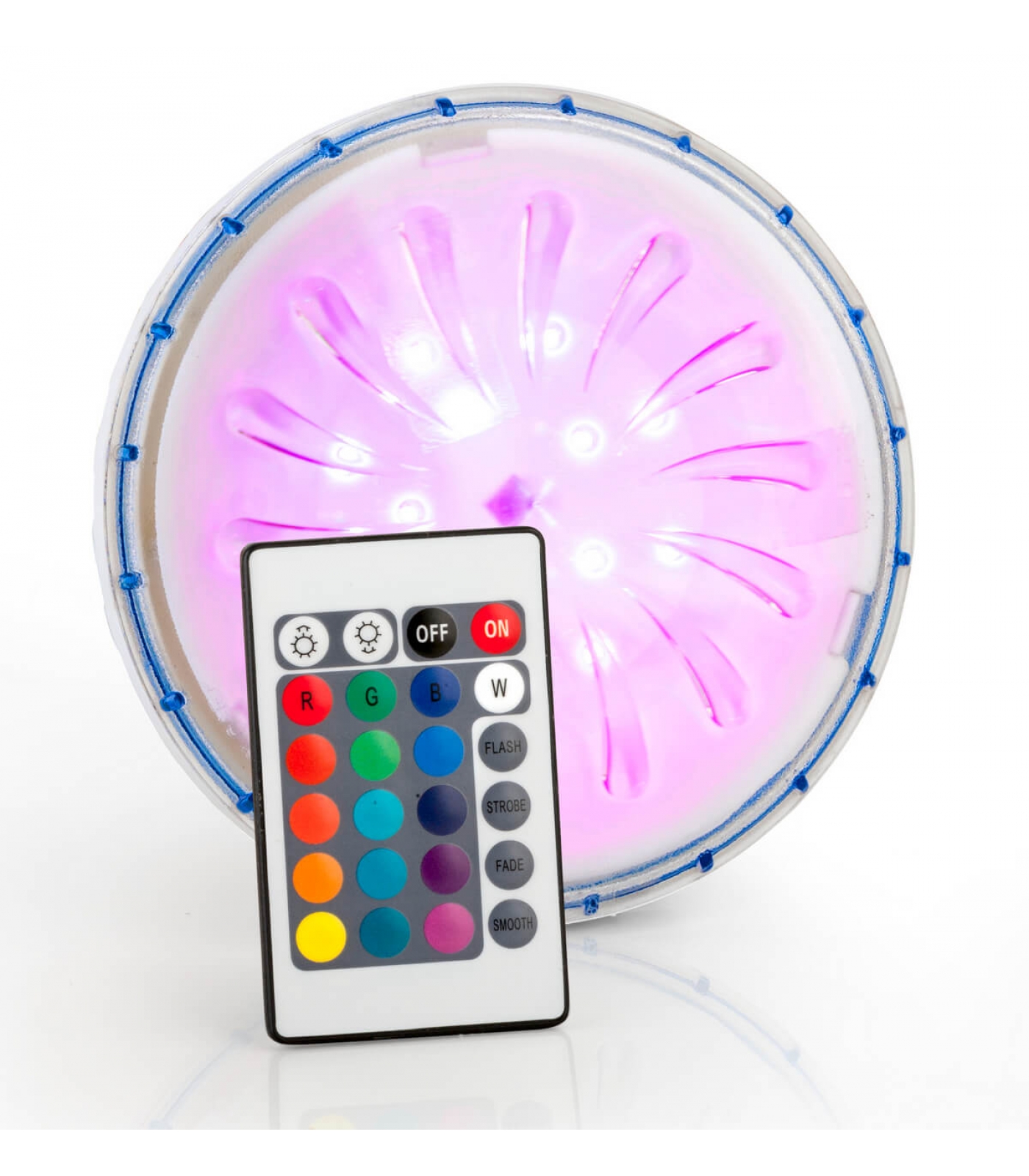 Подсветка цветная Gre PLED1C на магните для бассейна. Подсветка имеет светодиодную магнитную базу, в комплекте идет пульт дистанционного управления и металлическая пластина, которая примагничивается снаружи, а сам светильник изнутри в воде. Подходит для всех типов каркасных и надувных бассейнов INTEX, BestWay. Несколько режимов работы подсветки позволят выбрать тот режим, который больше понравится Вам.