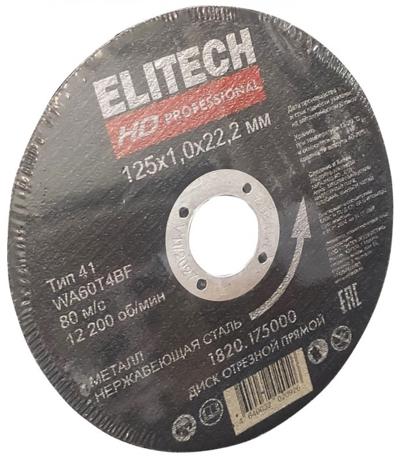 Отрезной круг по металлу Elitech 125х1,0х22 мм 1820.172500