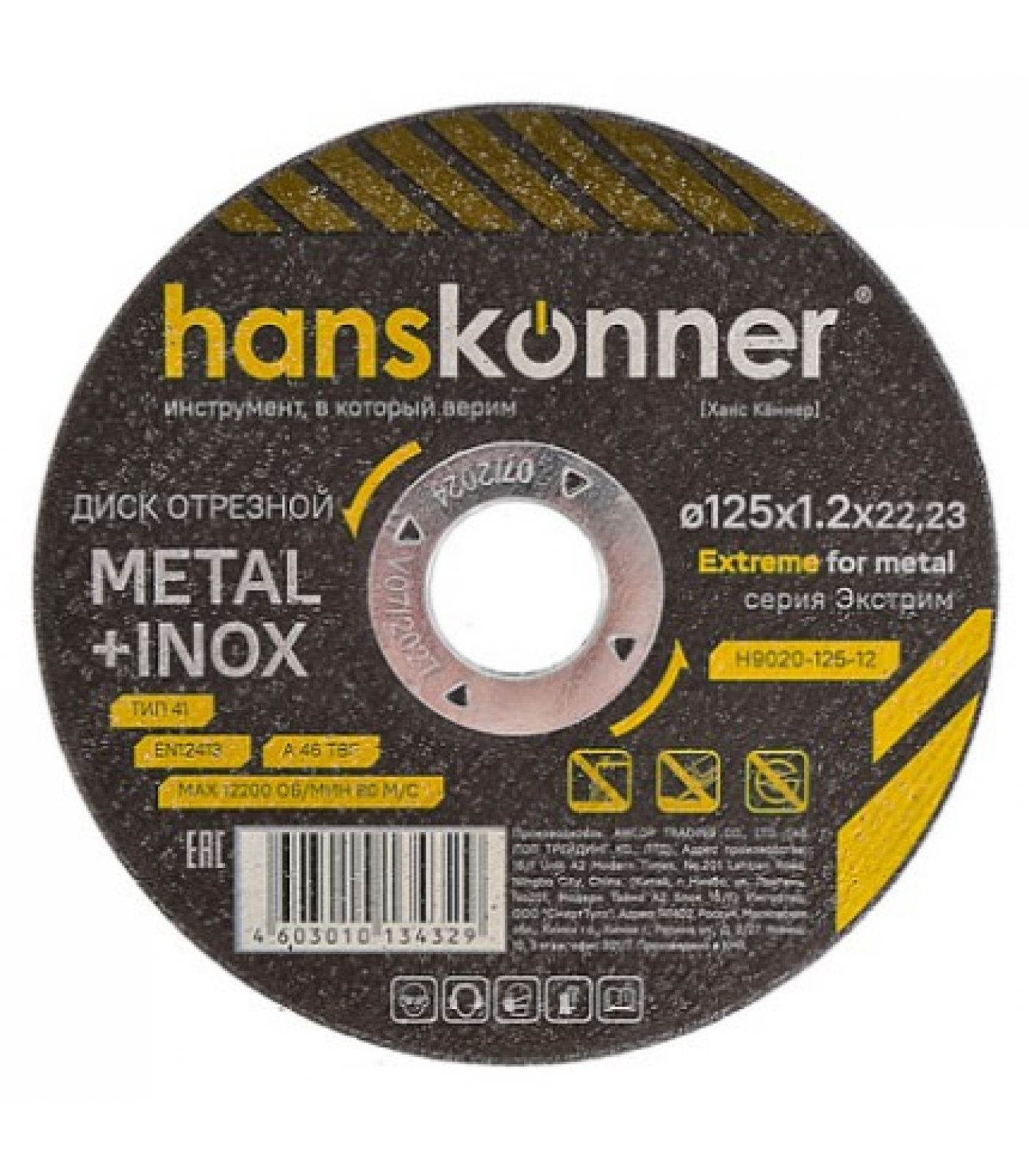 Диск отрезной по металлу 125х1,2х22,23 Hanskonner H9020-125-12