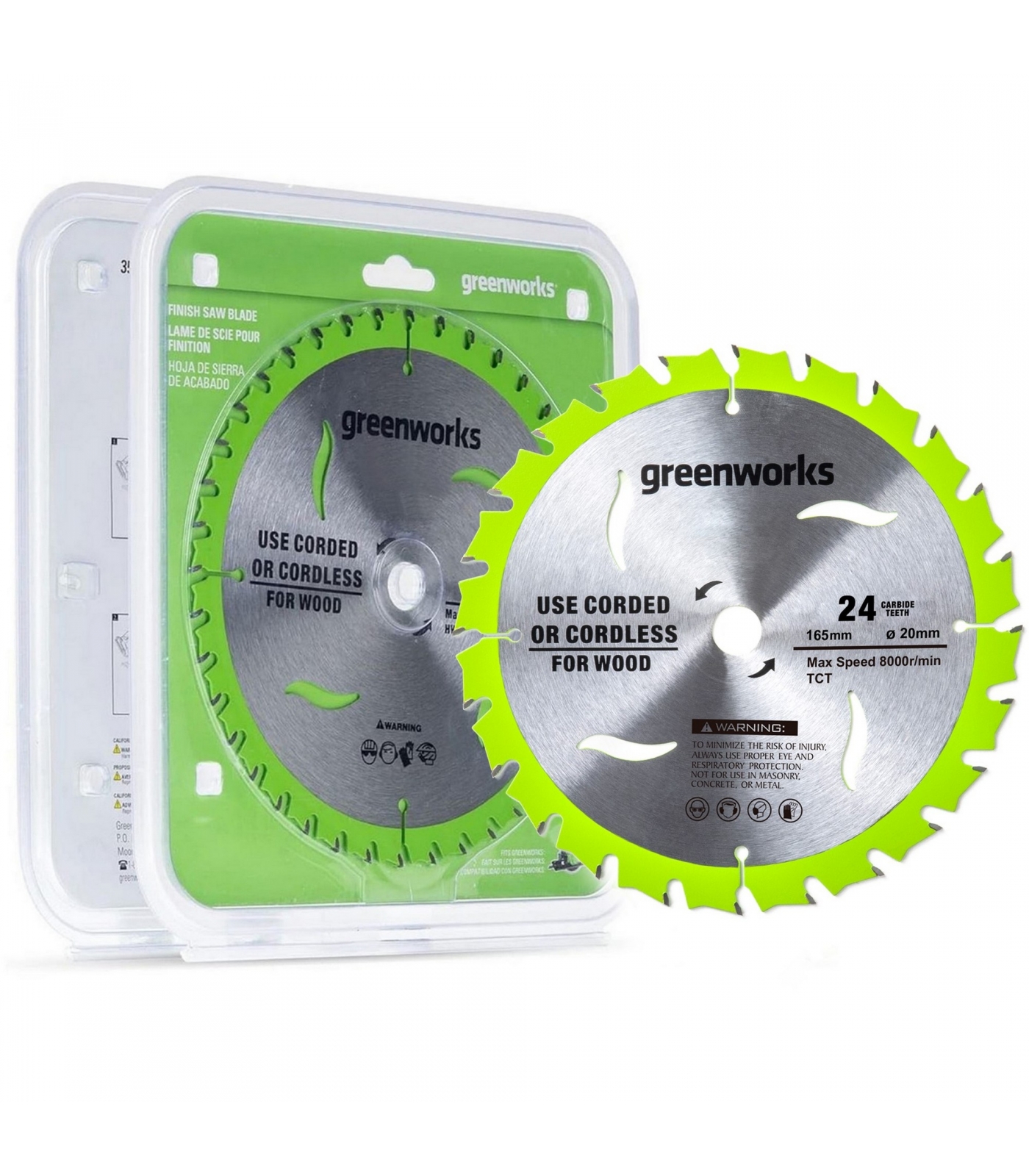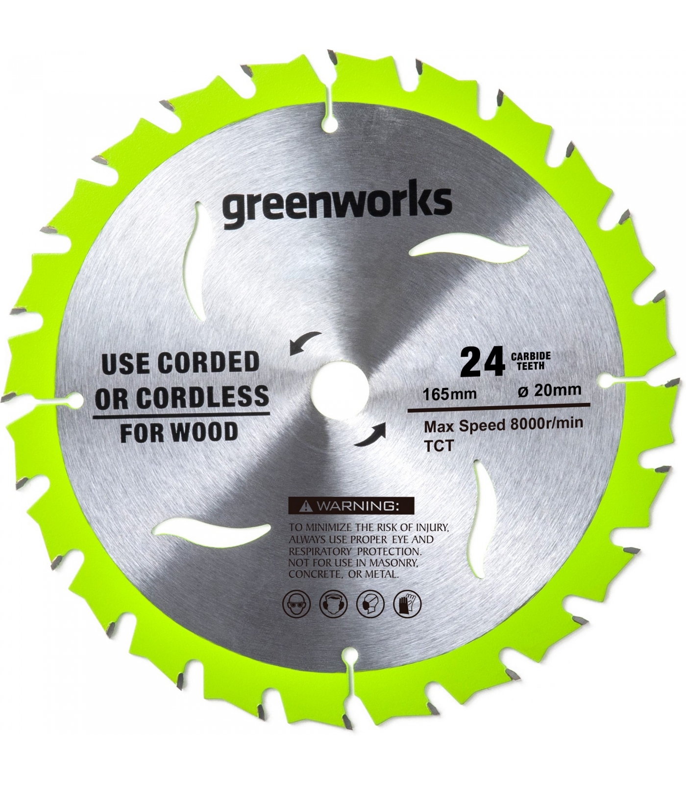 Диск пильный по дереву для циркулярной пилы Greenworks, (2955707), 165x1.6x20 мм, 24T