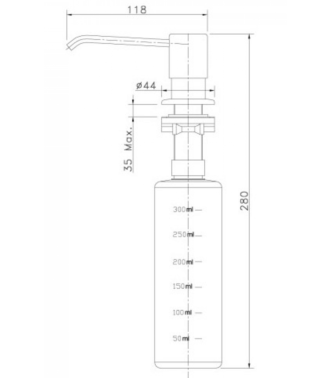 Максимальная толщина столешницы для монтажа дозатора 35 мм.
