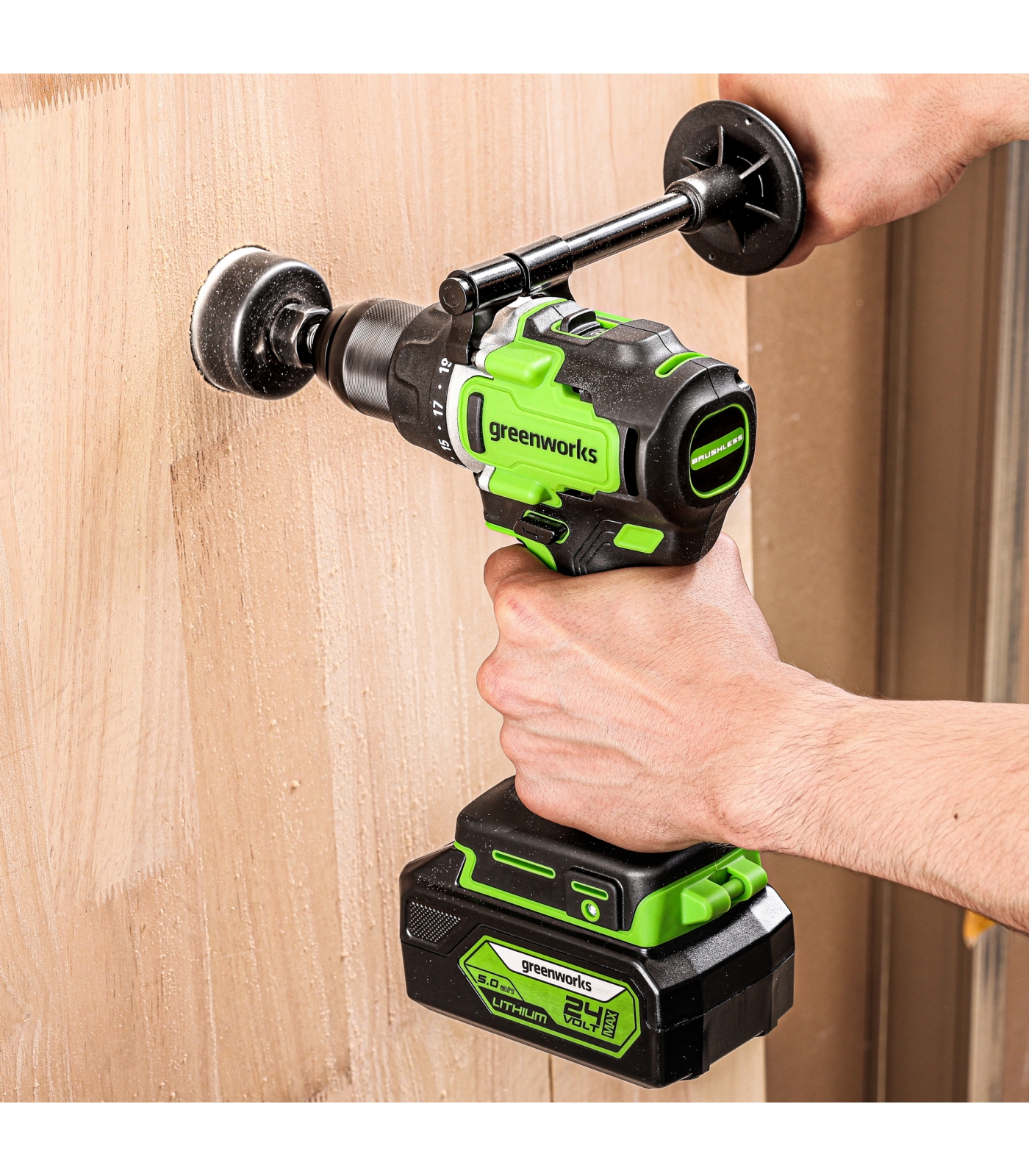 Дрель-шуруповерт аккумуляторная Greenworks GD24DD90 (3707507), 24 V, бесщеточная, без АКБ и ЗУ