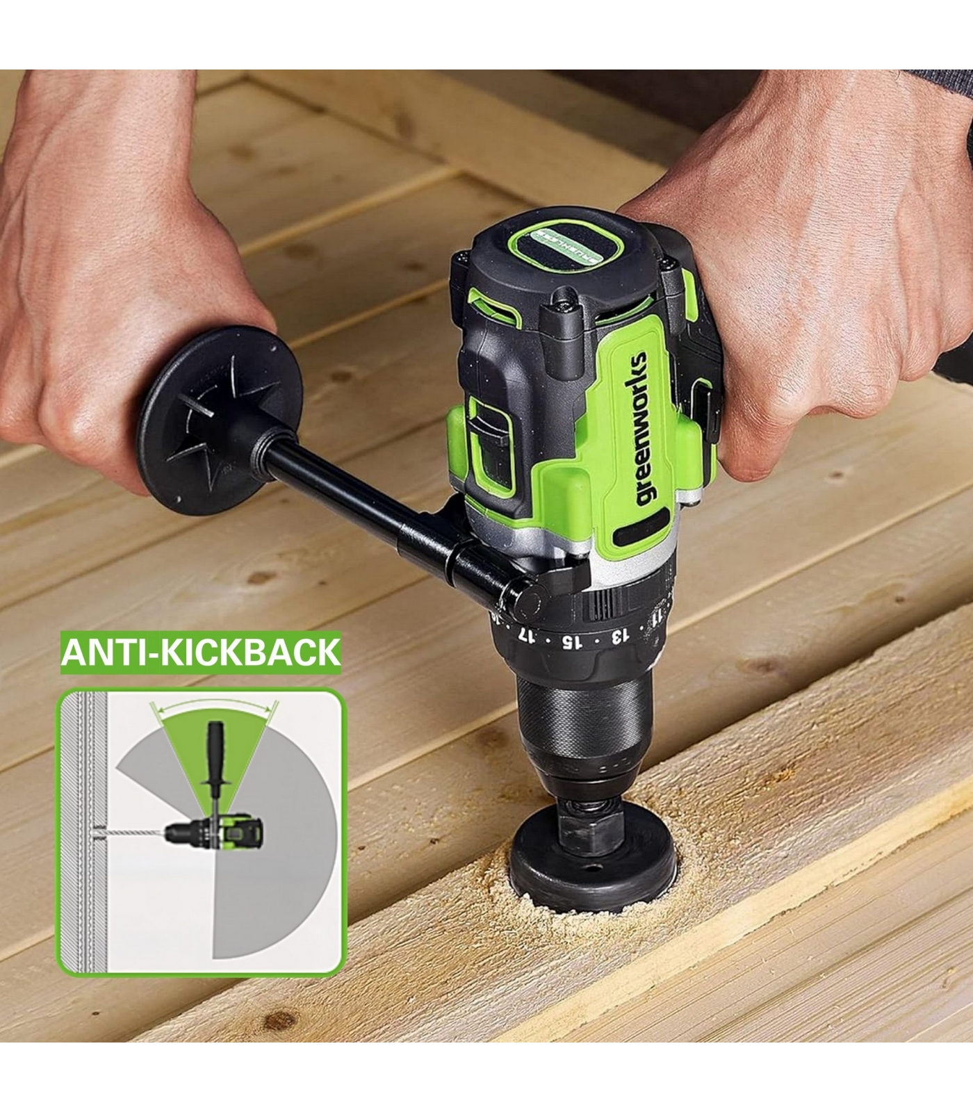 Встроенная система защиты от отдачи Anti-kickback обеспечивает максимум безопасности во время работы, за счет автоматического отключения инструмента в случае заклинивания оснастки.