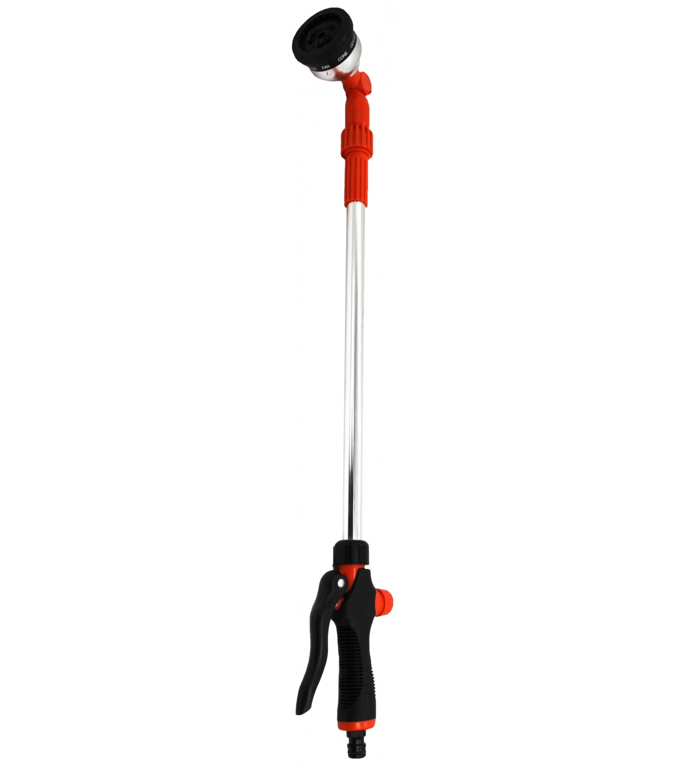 Душ 9-ти функциональный с алюминиевой трубкой оборудован телескопической штангой длиной от 90 до 120 см, позволяющей охватывать большую территорию, имеет 9 режимов полива (от сконцентрированной струи до распыления) с плавной регулировкой и удобным переключением. Оснащен эргономичной ручкой, обеспечивающей удобное расположение инструмента в руке. Легко и быстро подключается к системе полива. Имеет простую конструкцию, что обеспечивает долгую и надежную эксплуатацию.