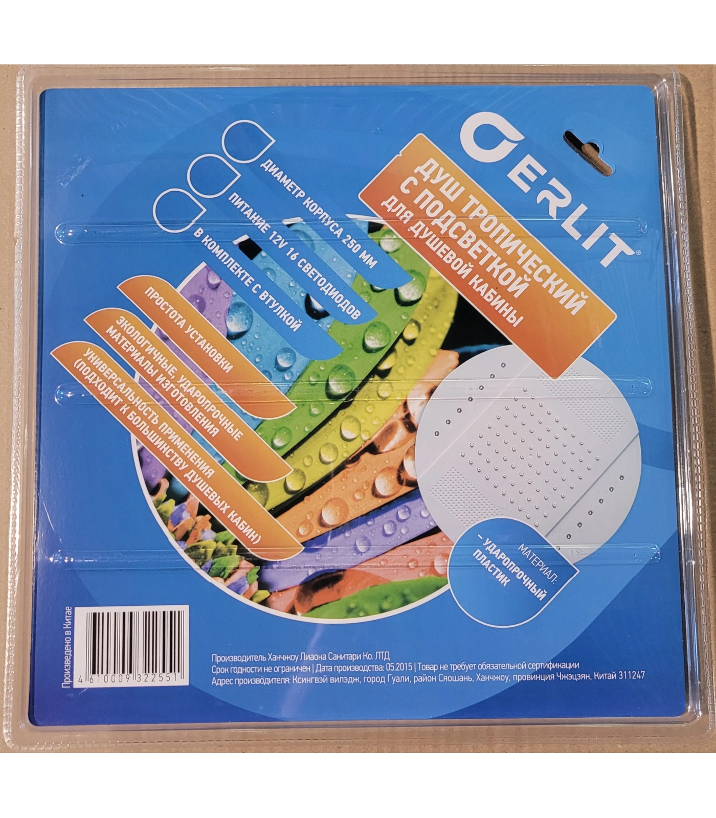 Верхний душ ERLIT 250 мм белый, с подсветкой, блистер