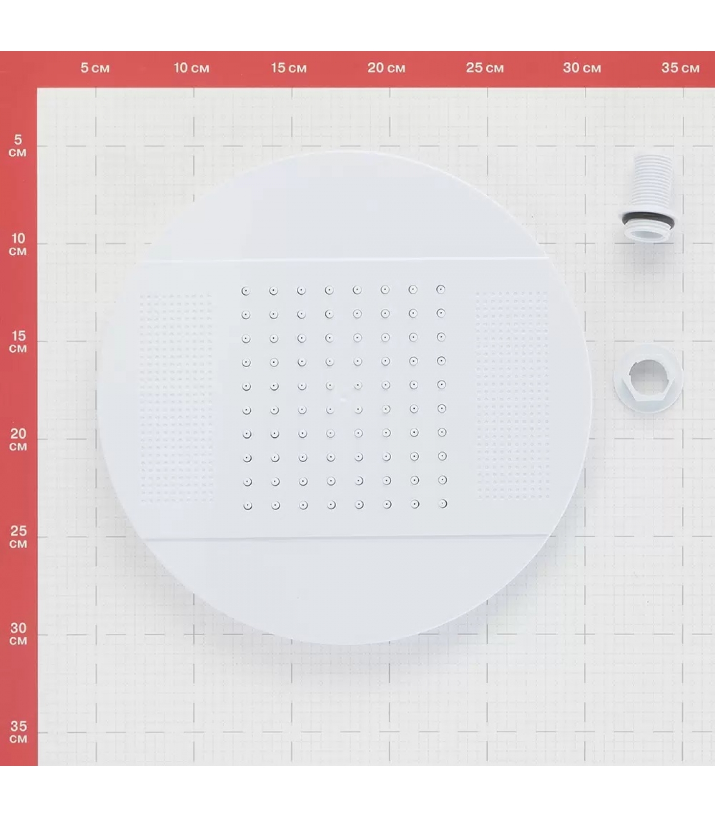 выполнены из ударопрочного белого пластика, не подвергающегося коррозии и другим повреждениям из-за воздействия воды и повышенной влаги. При эксплуатации на поверхности не появится ржавчина и известковые отложения. Пластик - экологичный, не поддерживающий размножение микроорганизмов. Процесс установки не занимает много времени за счет продуманной комплектации, простой конструкции и отсутствия подсветки. Обязательный компонент - втулка подвода воды. Изделие состоит из выступающего штуцера и втулки с накидной гайкой.