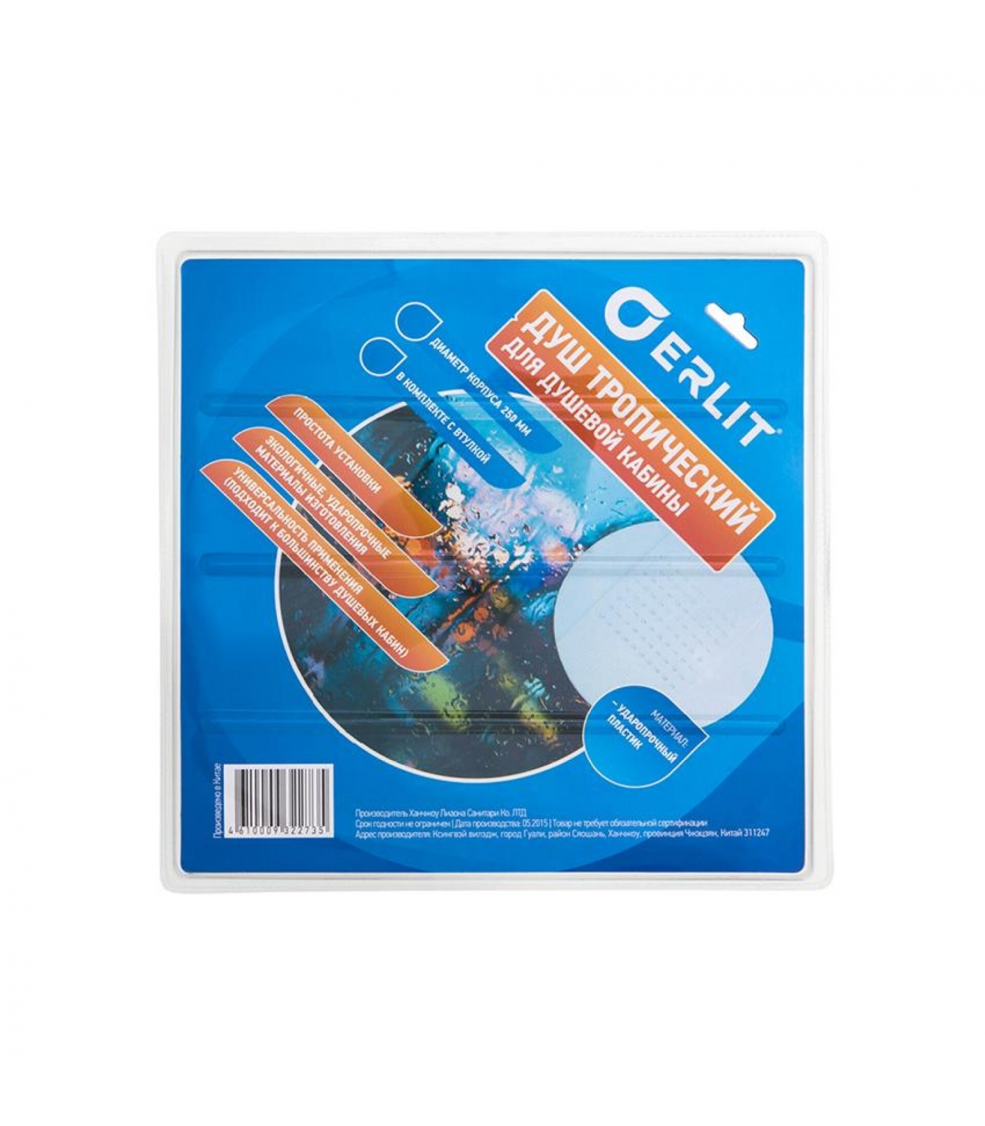 Верхний душ ERLIT 250 мм белый, без подсветки, в блистере