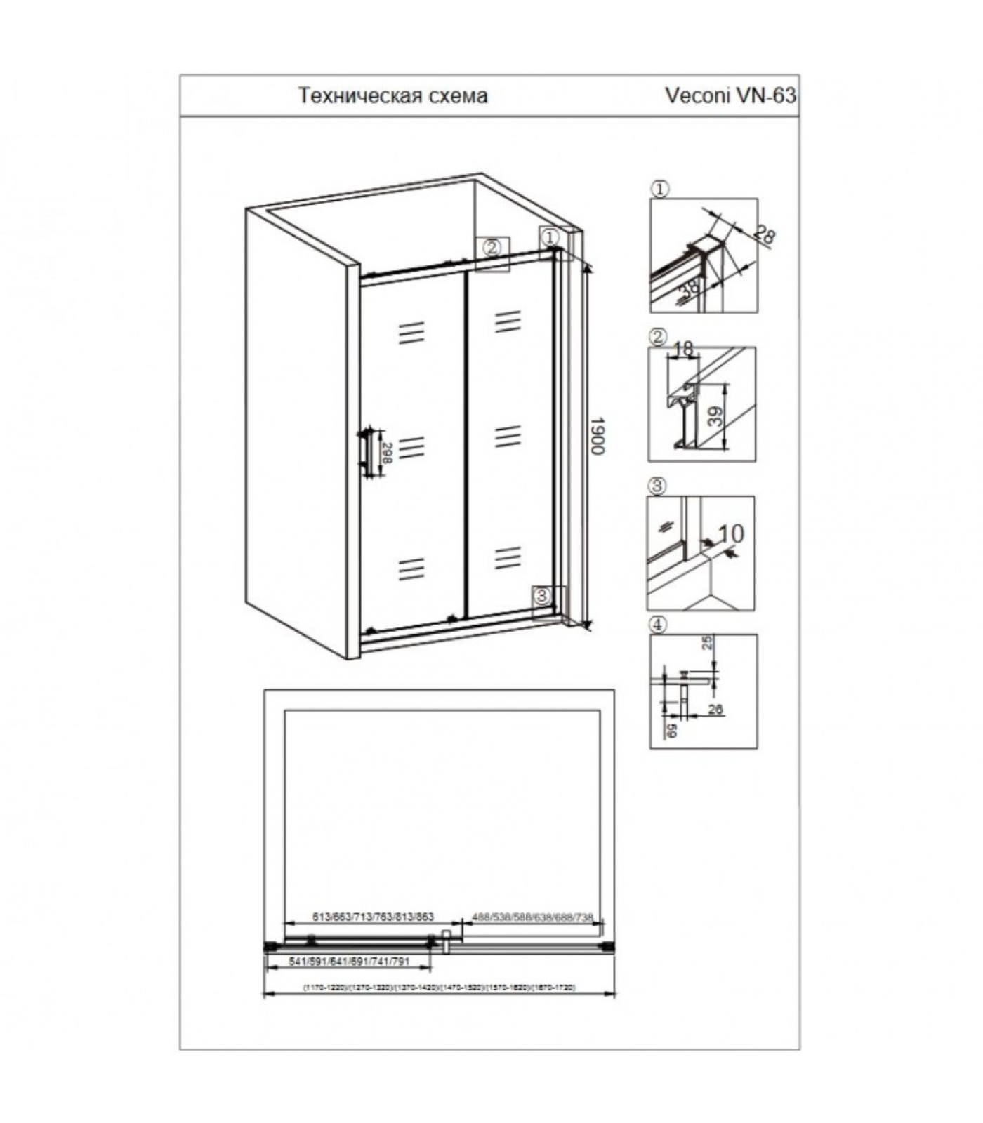Душевая дверь Veconi Vianno VN-63. Душевая дверь раздвижная. Раздвижная дверь и одно неподвижное стекло. Стекло закаленное безопасное 6 мм. Покрытие стекла Veconi Easy Clean защищает поверхность от разводов, сокращает появление известкового налета и загрязнений на поверхности изделия. Магнитные уплотнители обеспечивают герметичное закрывание двери, плотно прилегая к профилю. Профиль анодированный алюминий в цвет - хром. Регулируемые пристенные профили -30/+10 мм. Регулируемые двойные ролики из нержавеющей стали. Ручки открывания двери из нержавеющей стали в цвет хром. Универсальная установка открытия двери. Дополнительно можно скомплектовать с боковой панелью KP-02, образуя Г-образный уголок RV-35. Высота изделия 190 см.