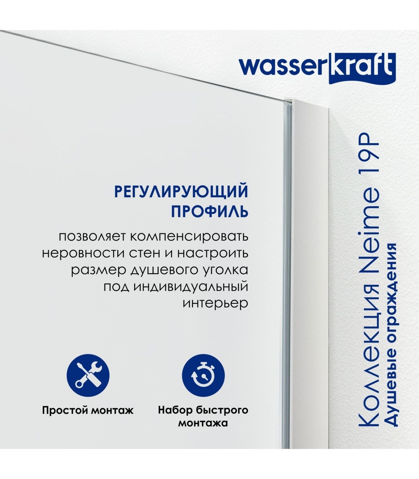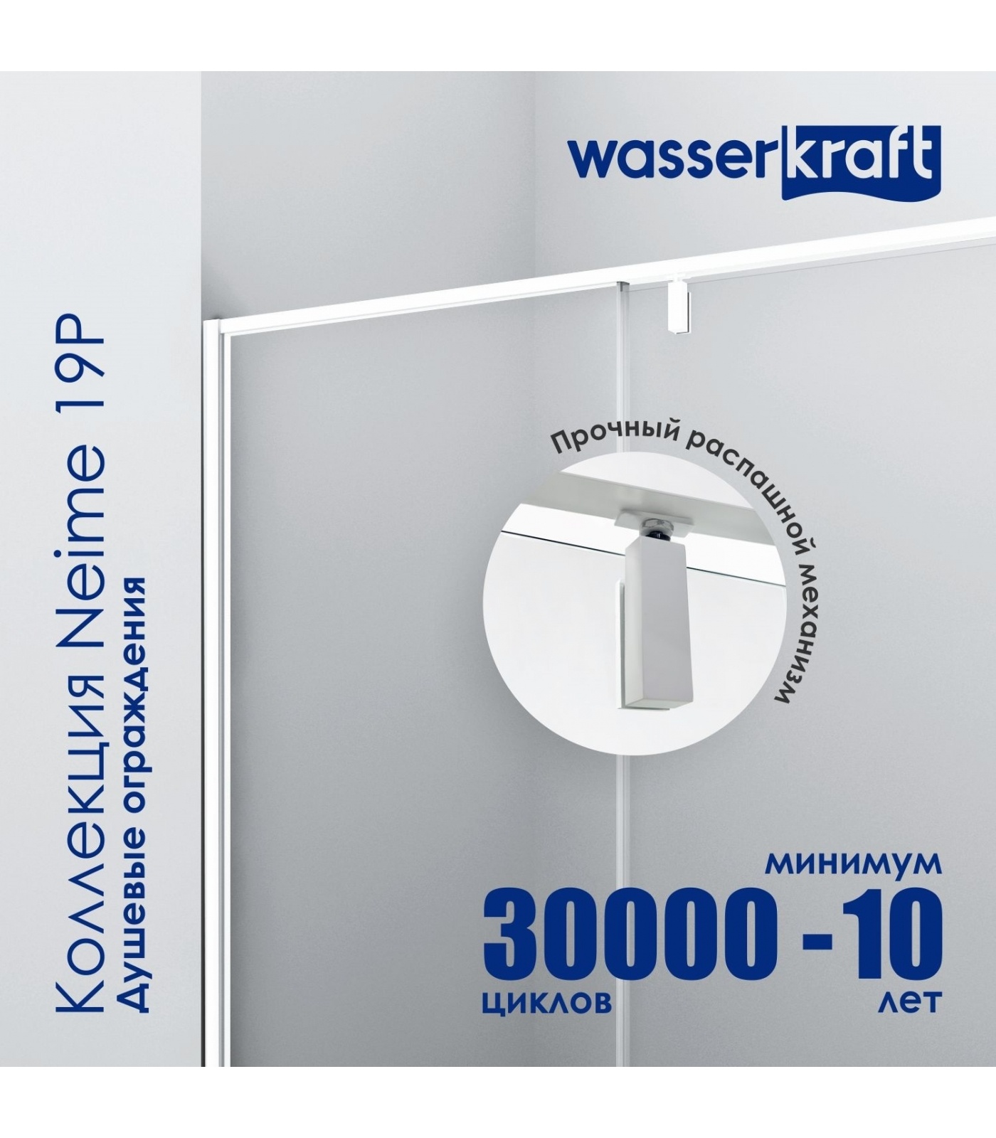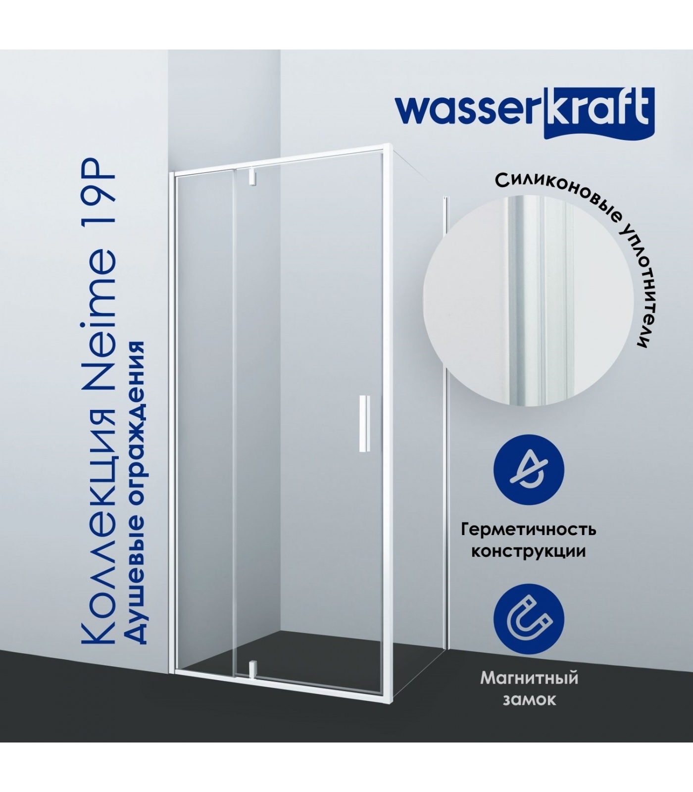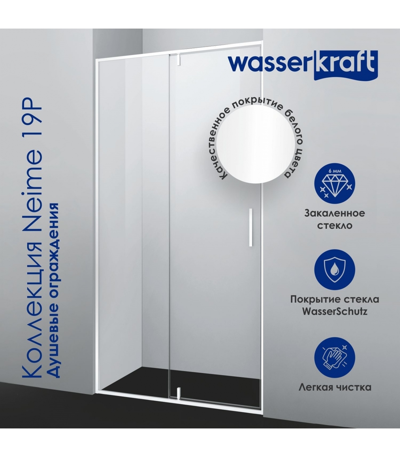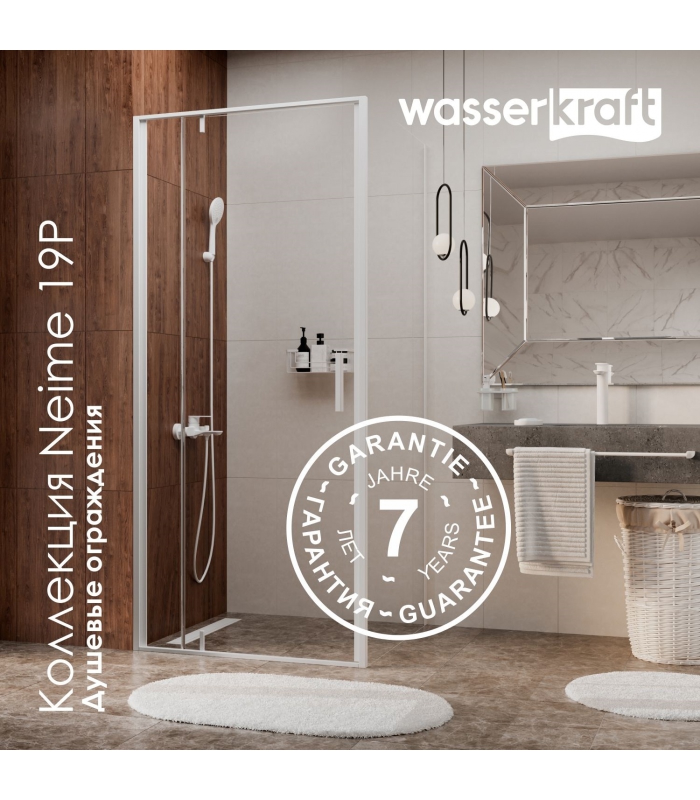 WasserKraft Neime 19P04 Душевая дверь 90x200 см, распашная (система PIVOT), профиль белый.