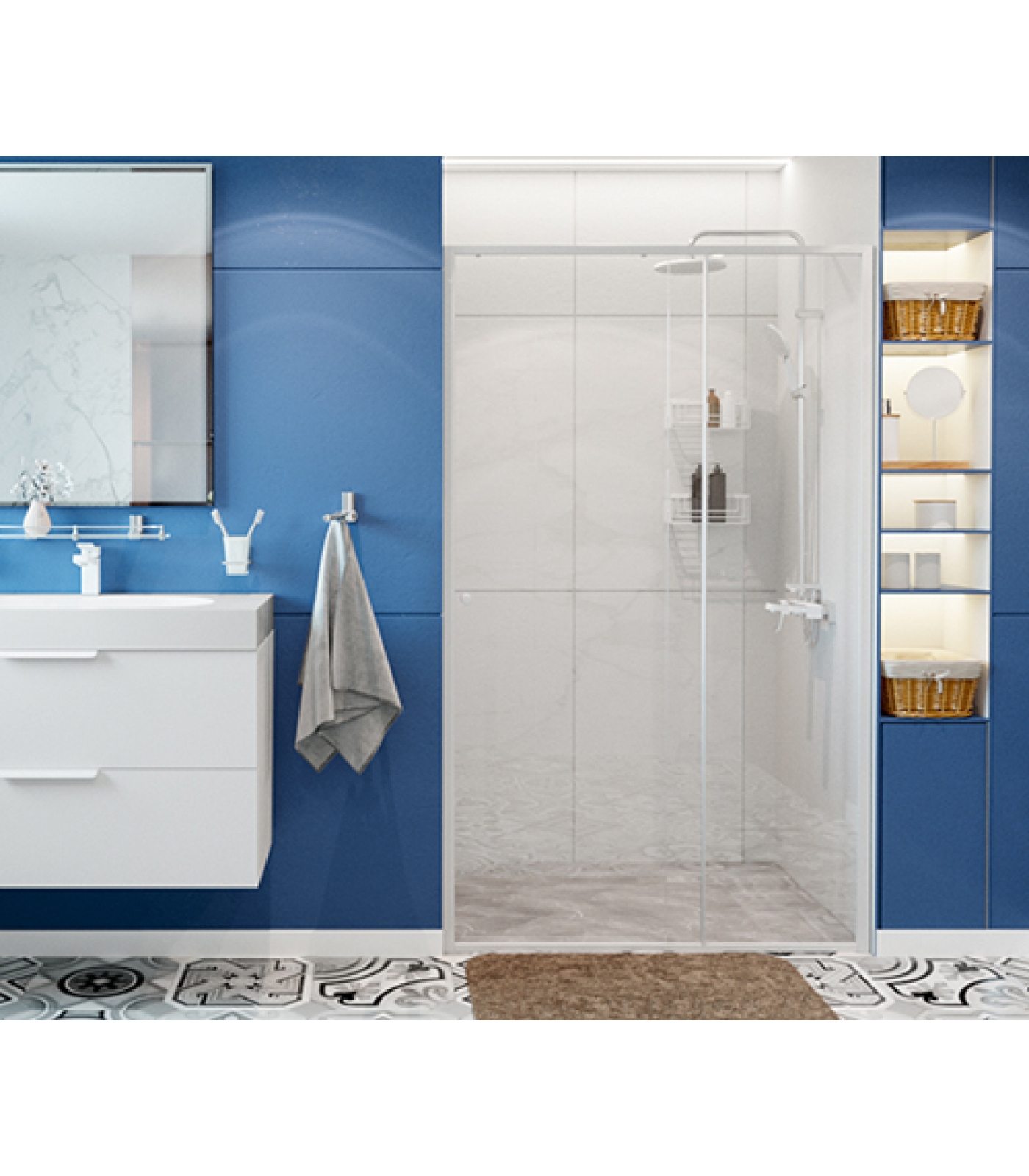 Закаленное прозрачное стекло 6 мм, Покрытие стекла WasserSchutz, Раздвижной механизм из нержавеющей стали , Анодированный алюминиевый профиль 23 мм , Ручка двери из нержавеющей стали, Регулирующий профиль двери до 4 мм, Механизм легкой чистки , Силиконовый уплотнитель двери с магнитным замком, Цвет профиля: белый , Силиконовые уплотнители