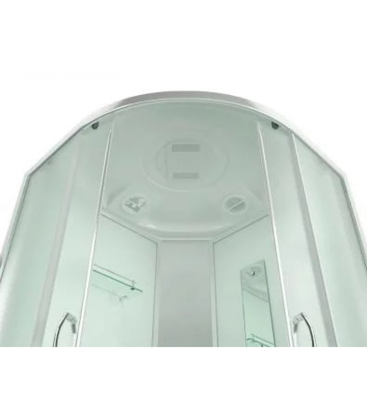 Кабина оснащена функцией верхний «тропический душ», которая смешивает струи воды с потоками воздуха – такой тип душа обладает массажным эффектом и благотворно влияет на организм. Для дополнительного удобства в кабине предусмотрены полочка и зеркало.