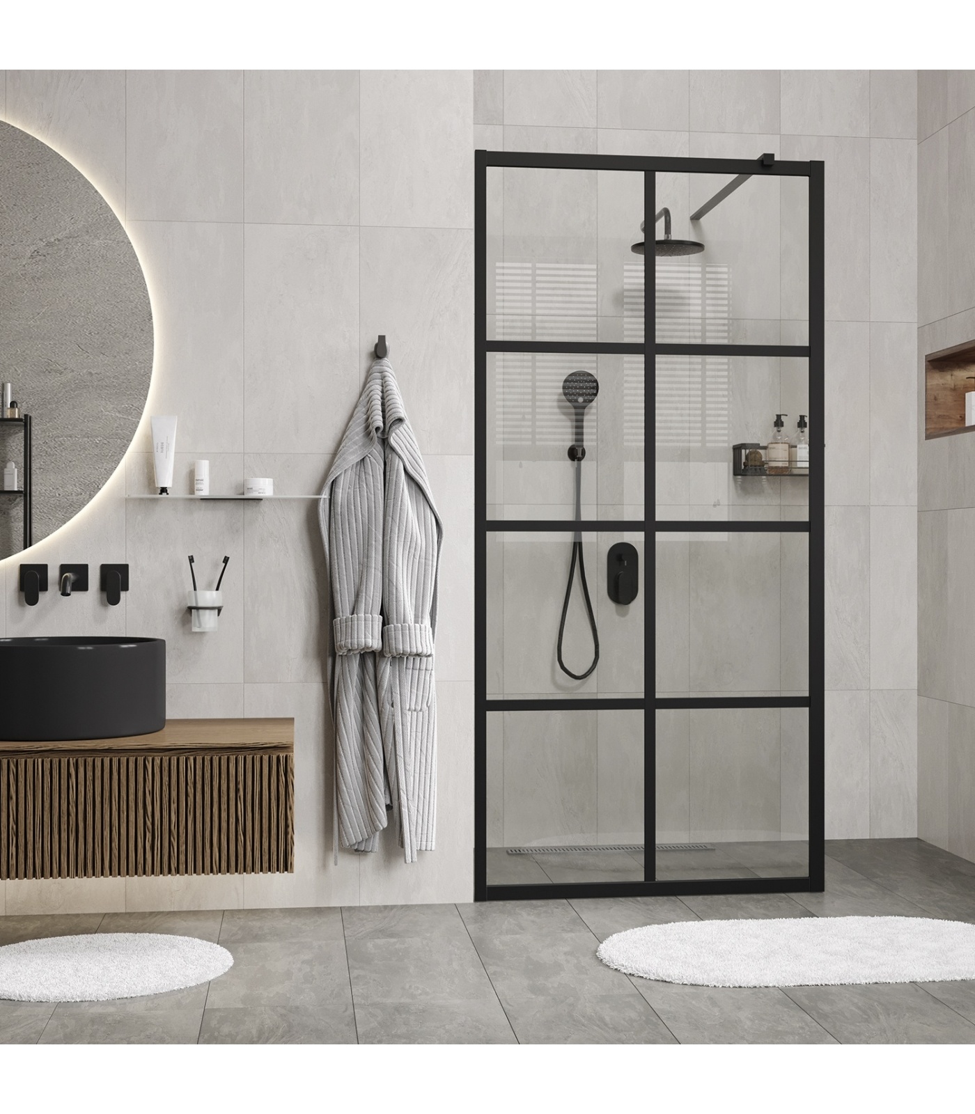 В душевых перегородках используется закаленное стекло 8 мм стандарта EN 12150-1. Обладает термической прочностью и совершенно безопасно для человека. Покрытие стекла WasserSchutz. Возможность регулировки бокового профиля позволяет компенсировать неровности стен и настроить размер душевой перегородки под индивидуальный интерьер. Качественное покрытие. Комплектующие душевой перегородки имеют качественное покрытие черного цвета, которое устойчиво к потускнению и легко очищается. Простой монтаж. Душевую перегородку можно легко и быстро установить, не обладая специальной подготовкой. К каждому изделию прилагается инструкция.