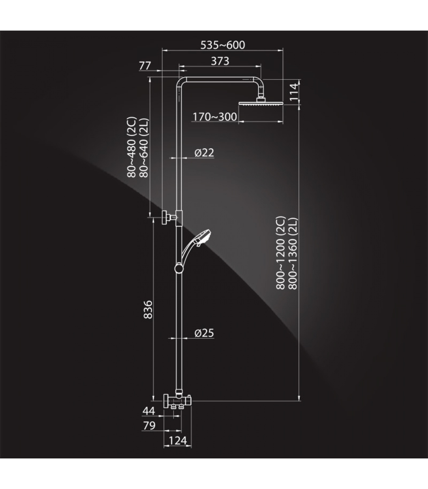Душевой гарнитур Elghansa SHOWER SET 1700172-2L Set-11, верхий душ, стойка, ручной душ