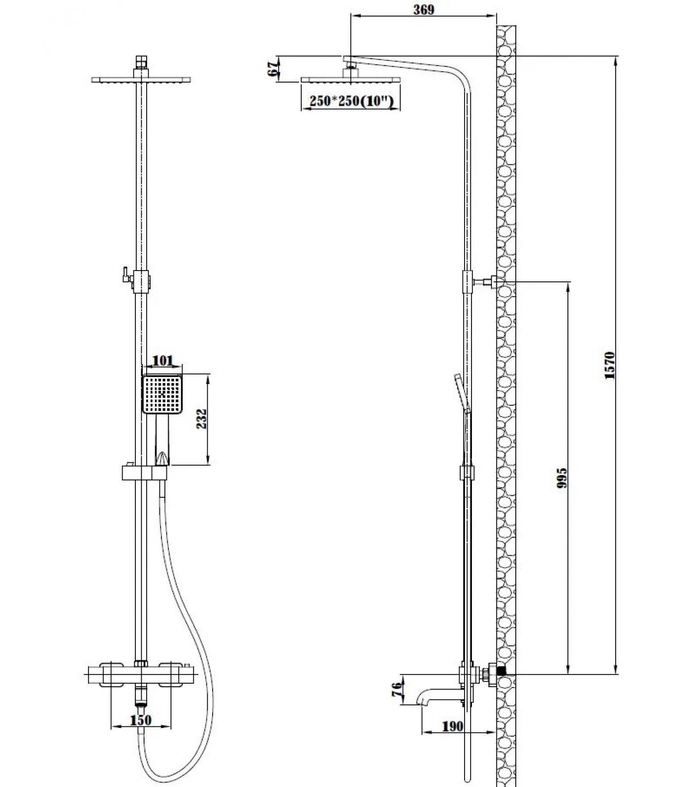 Если хочется принять обычный душ, то для этого предусмотрена 1 - режимная ручная лейка. Лейка крепится к стойке на держателе, который позволяет менять высоту и угол наклона. Она соединена длинным 1500 мм шлангом в оплетке из стали SUS201.