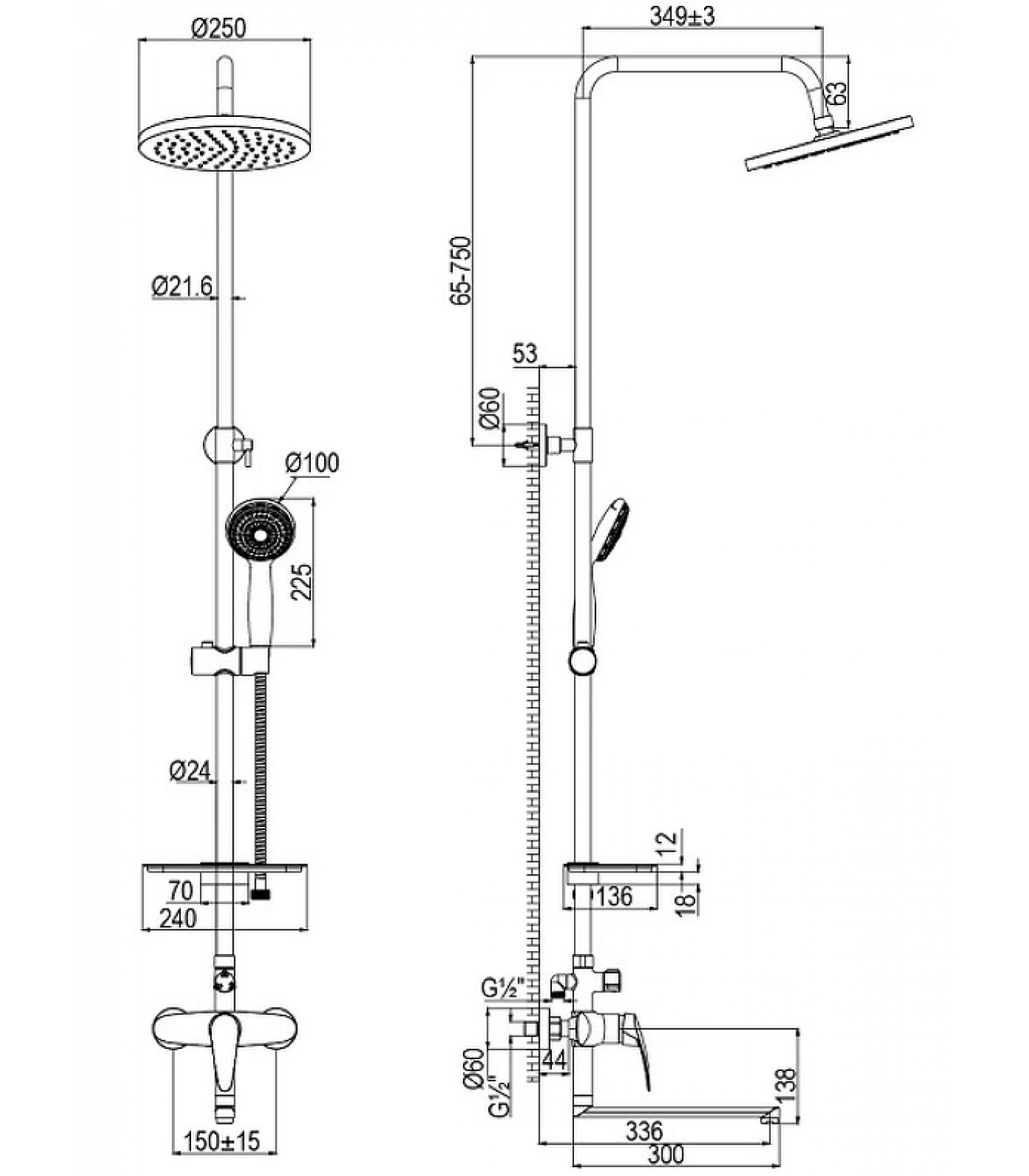 Смеситель для ванны с тропическим душем оснащен поворотным изливом, что делает его использование особенно удобным. Верхний душ увеличенного диаметра обеспечивает максимальный комфорт при использовании.