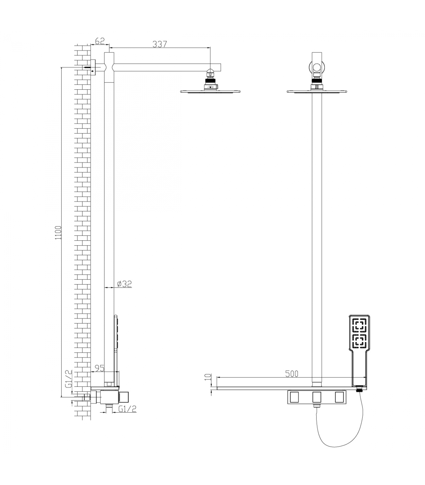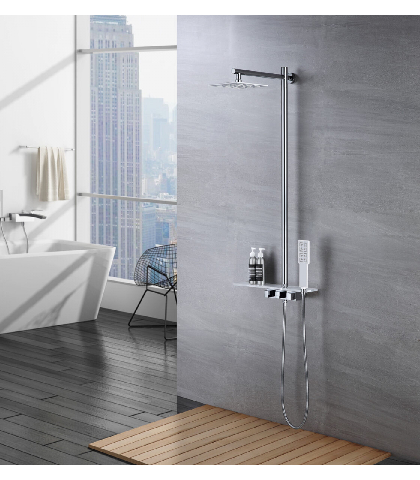 Смеситель для душа с фиксированной высотой штанги и верхней душевой лейкой "Тропический дождь"