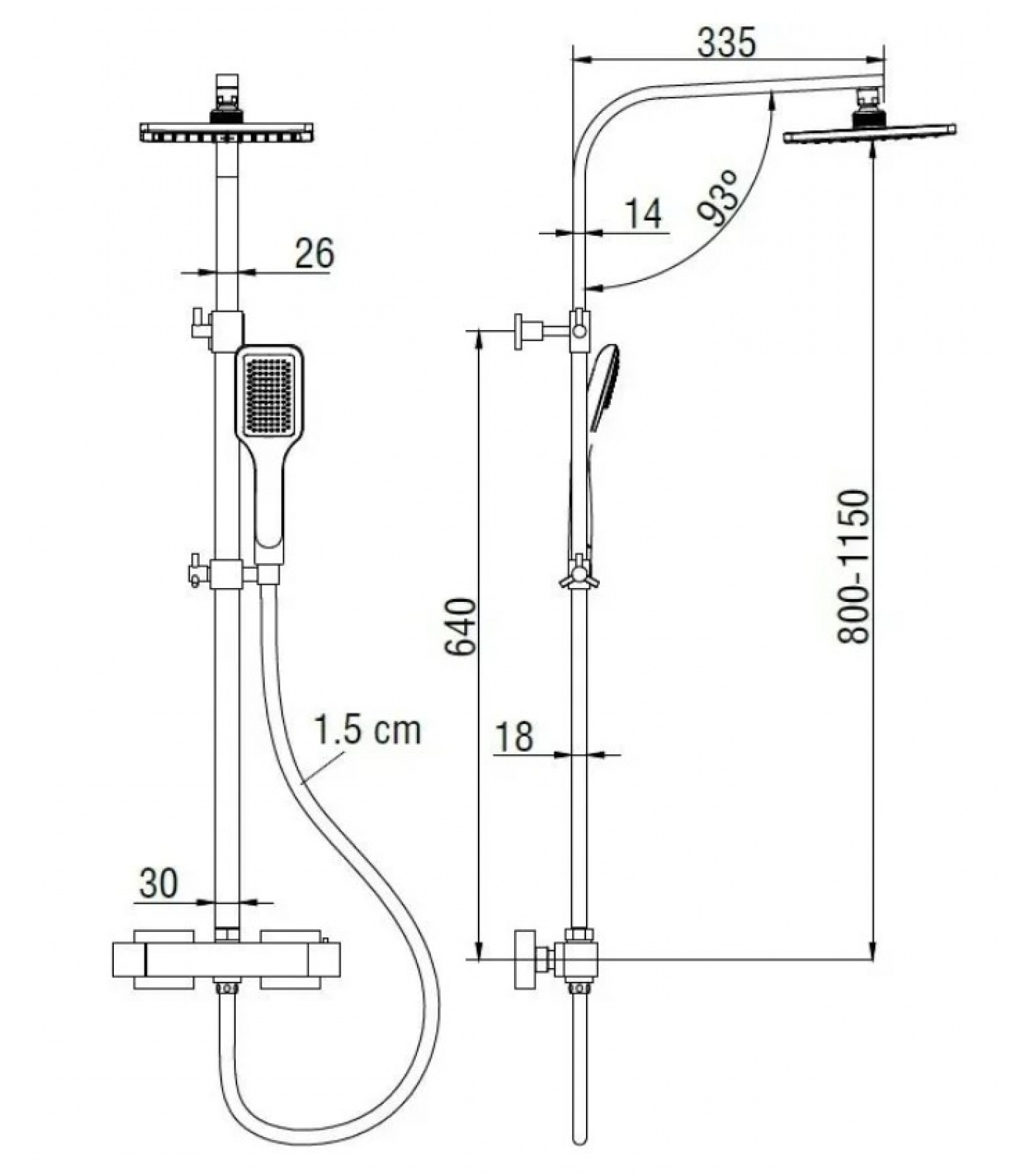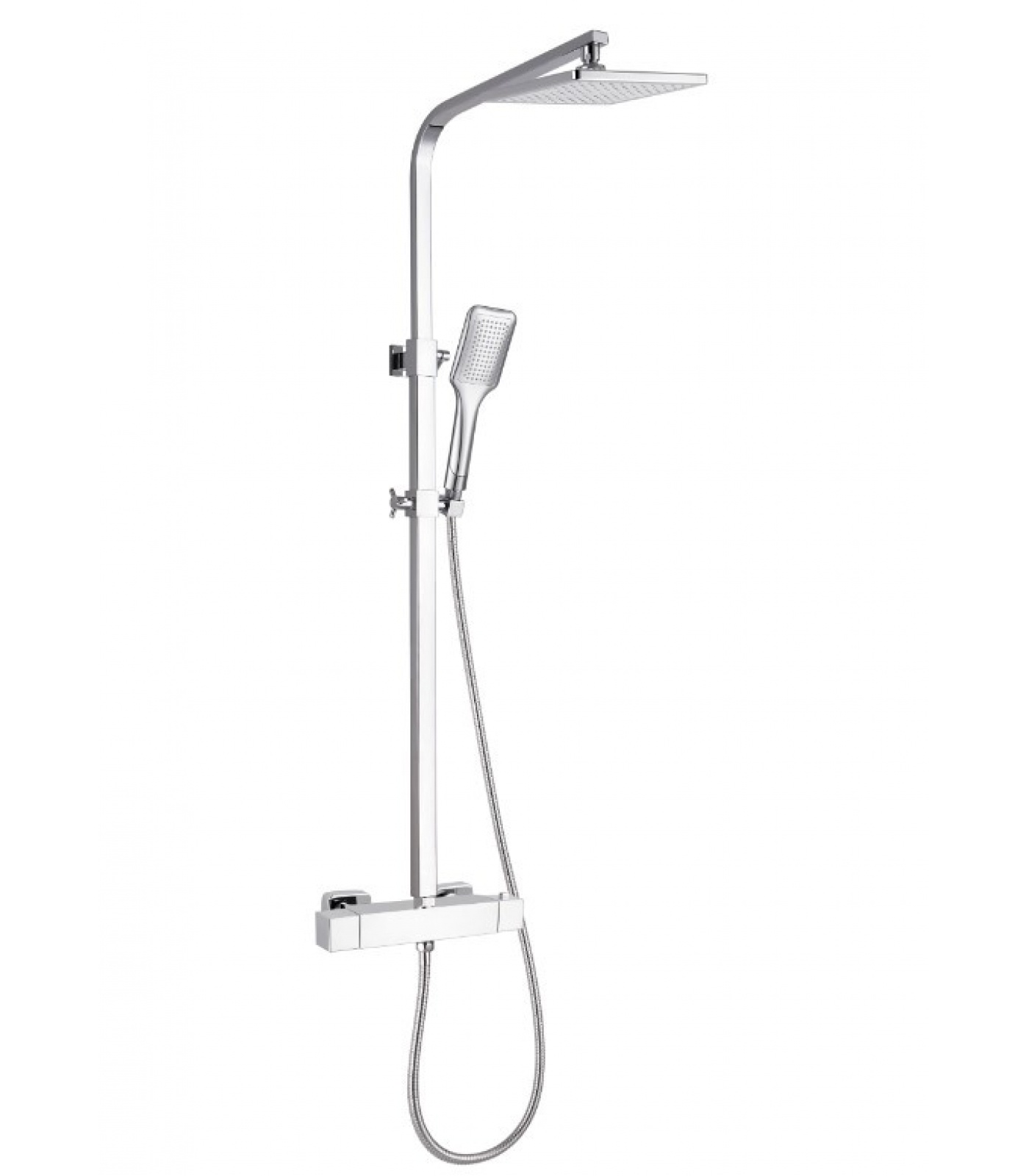 Душевая система с термостатическим смесителем для душа СМАРТ-Квадро Комплект: термостатический смеситель для душа, штанга, ручной переключатель, 1-функциональная душевая лейка, лейка верхнего душа, 200*200mm, шланг