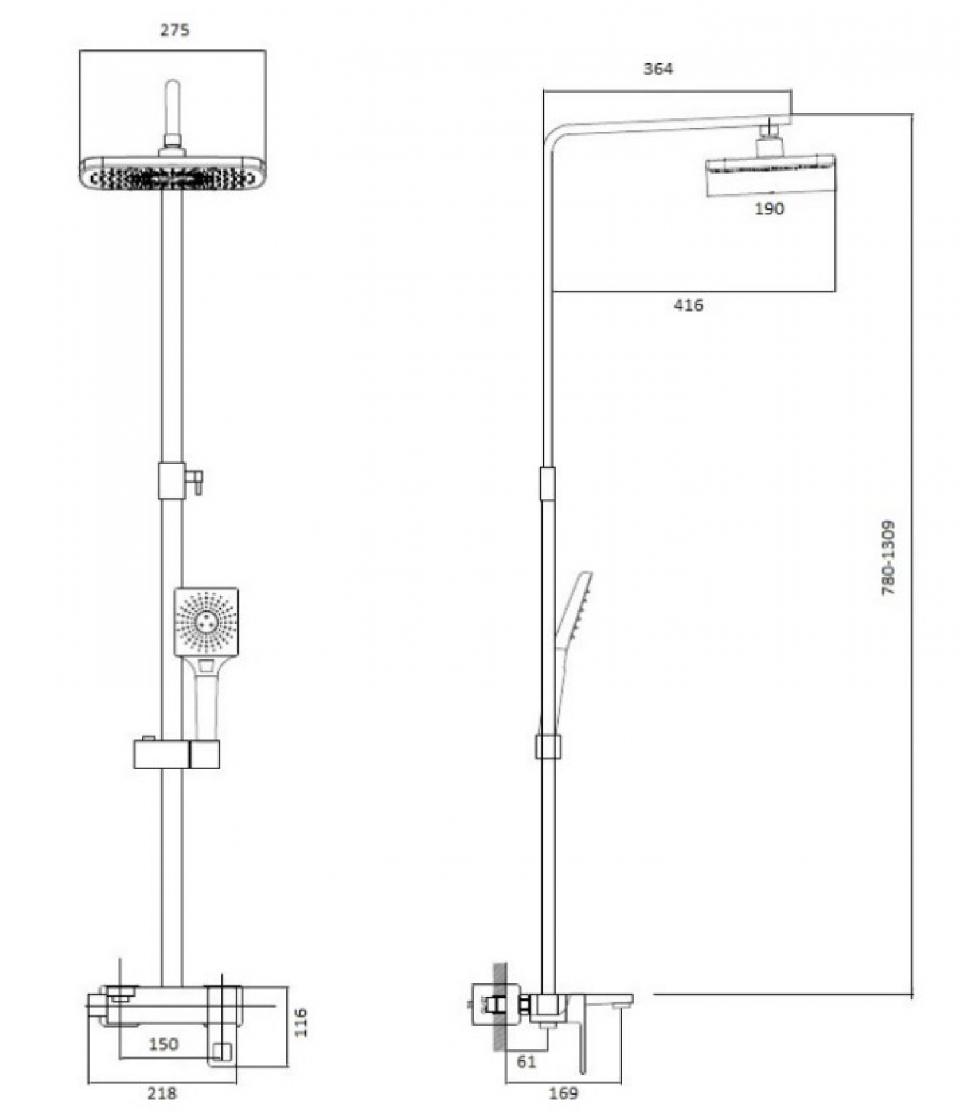 Душевая система Valfex. Изготовлена из высококачественной латуни Тропический душ. Излив для наполнения ванны. Душевая штанга регулируется по высоте от 78 см до 131 см.