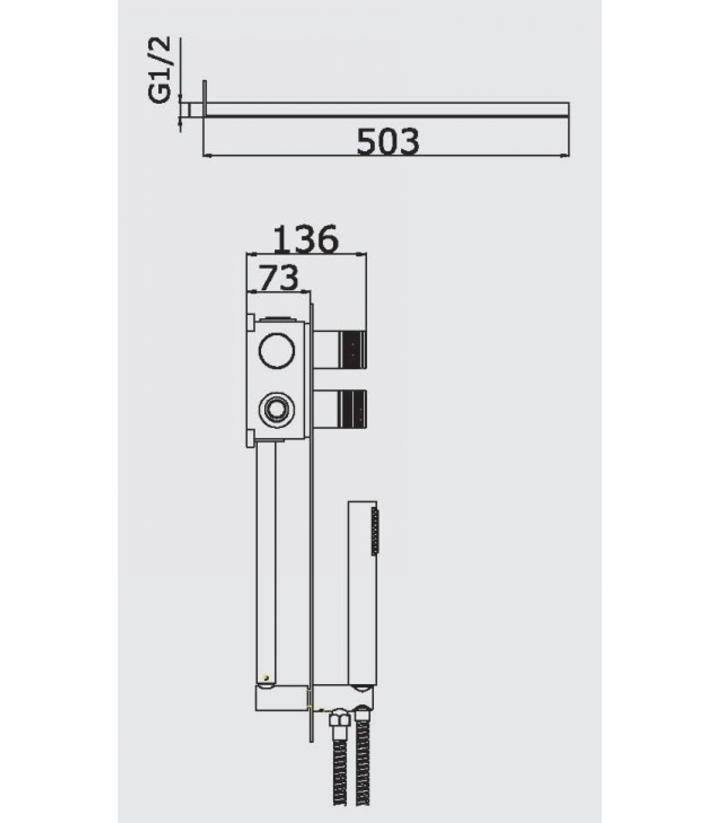 В комплекте: Держатель верхнего душа «тропический дождь», душевая лейка, настенное крепление для лейки, шланг 1,5 м (нерж. сталь), декоративная накладка для корпуса смесителя, комплект прокладок.