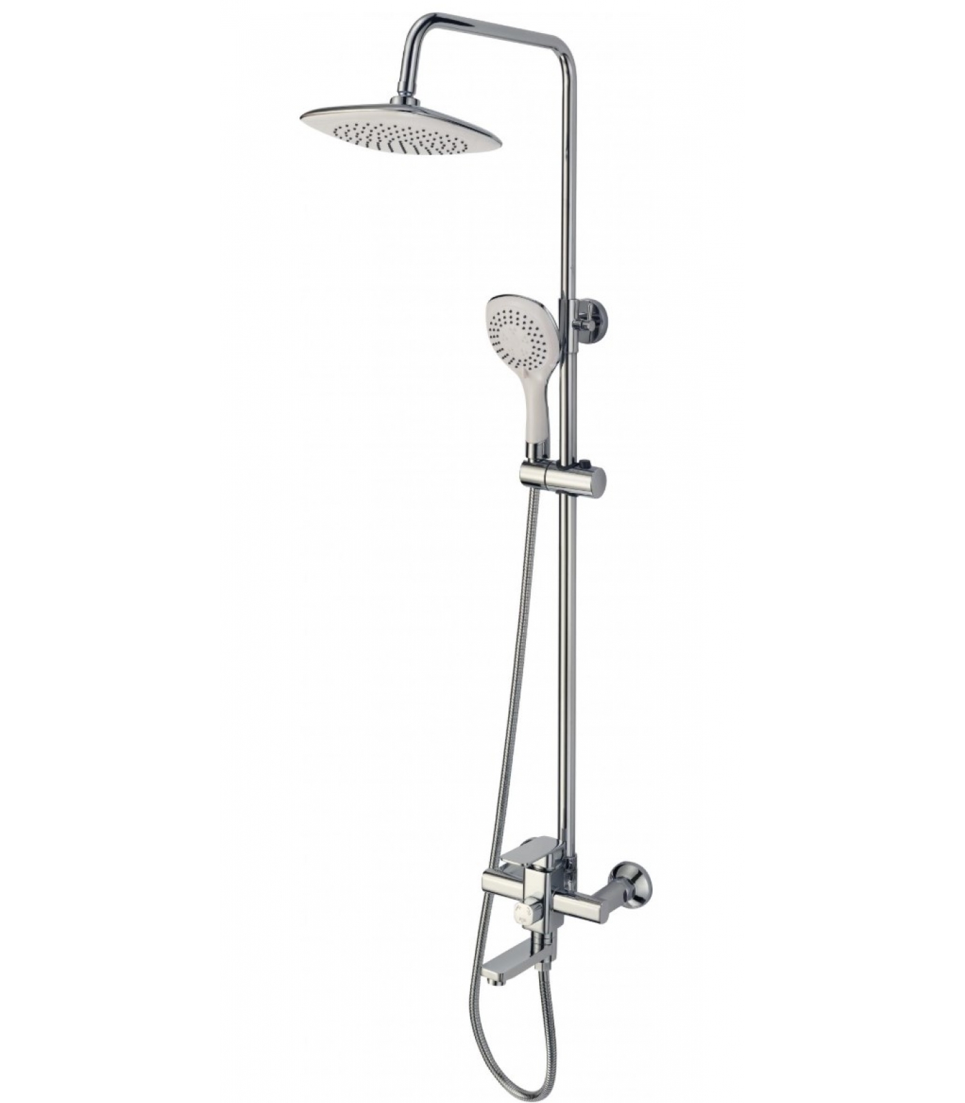Душевая стойка Fmark FM2402, однорычажная, излив, тропический душ, лейка, штанга, хром