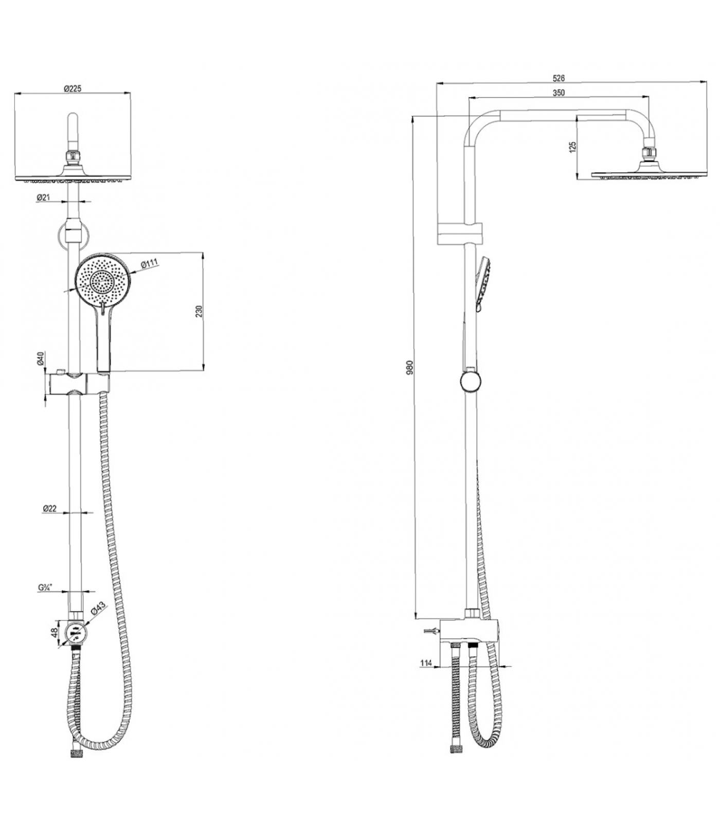 Душевой гарнитур Lemark LM8809BL без смесителя с верхней душевой лейкой "Тропический дождь" 225мм, черный