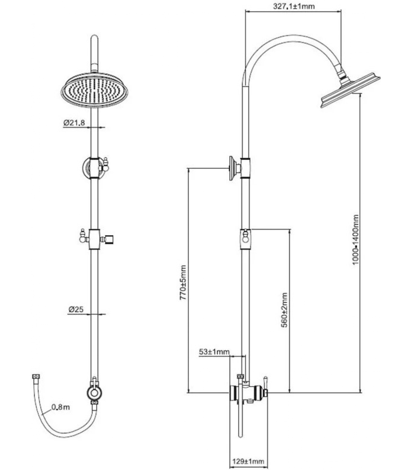 Душевой гарнитур SmartSant верхний душ 228 мм, штанга, шланг 800 мм, держатель ручного душа, хром